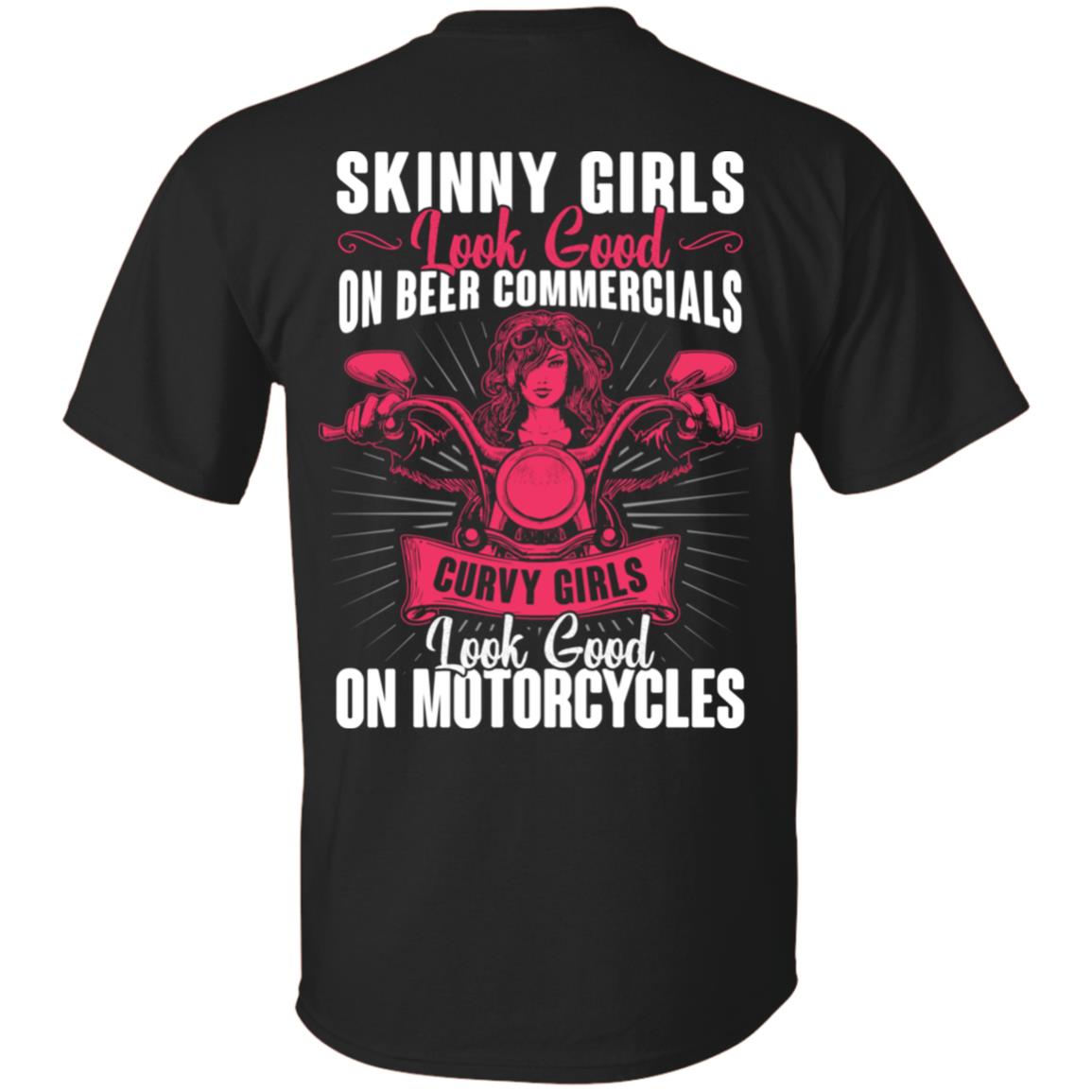 Skinny Girls Look Good On Beer Commercials Curvy Girls Look Good on Motorcycles Back Shirt – Funny Biker Girl Shirts