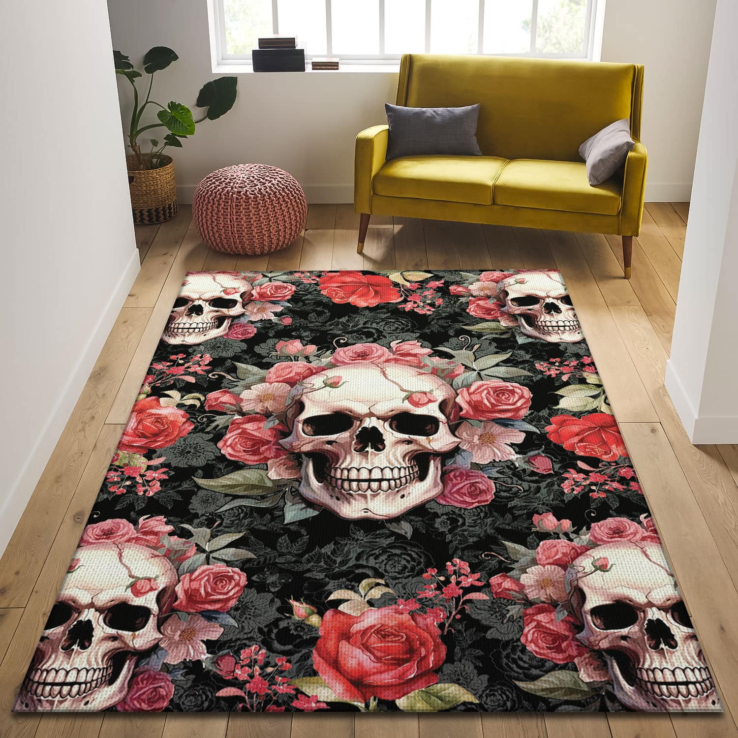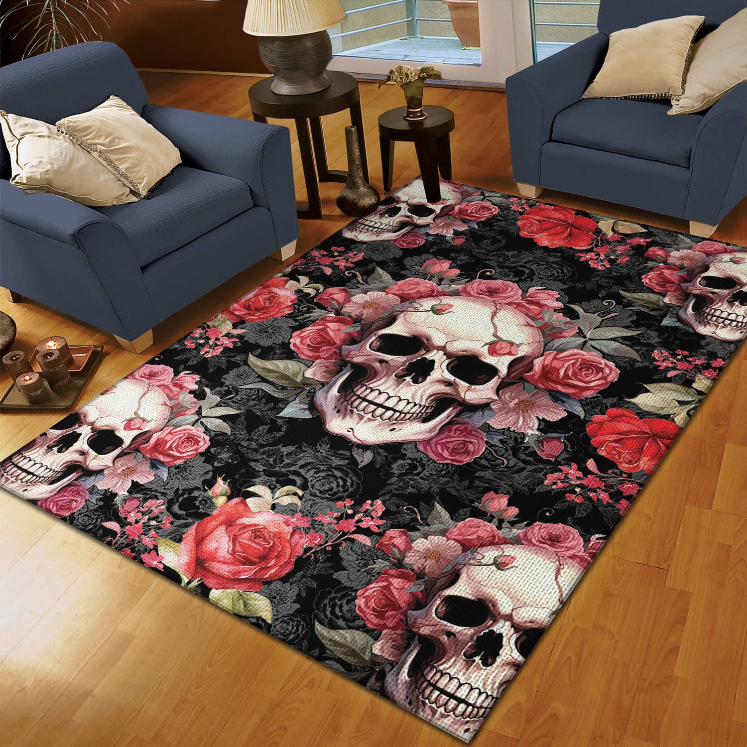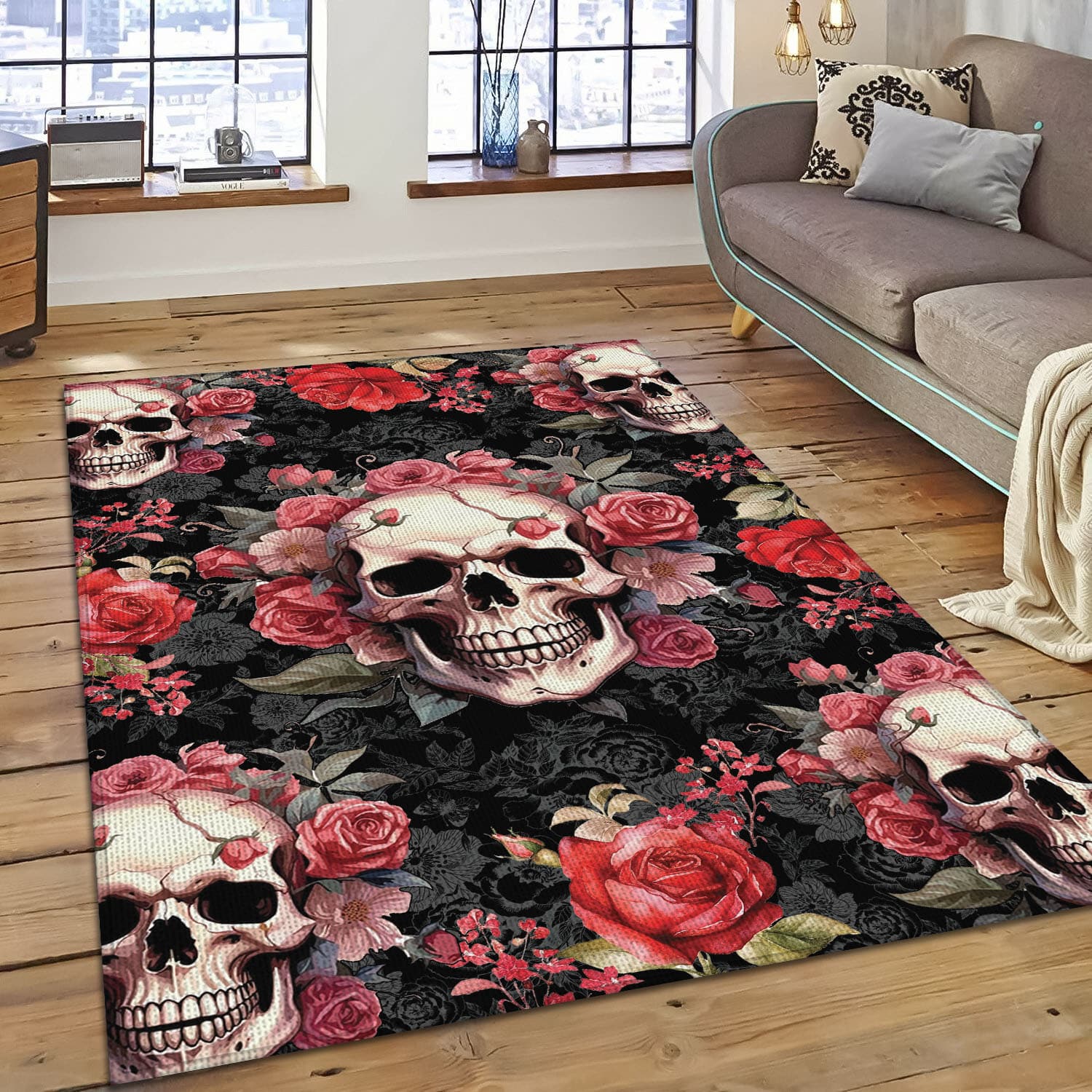 Let’s Shop Skull Flower Rose Decoration Home Rug Mat – Skull Rug – Skull Home Floor Mat!