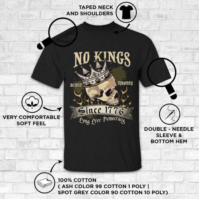 At CubeBik, besides custom apparel, we also offer tees, hoodies, sweaters, raglans, tanks, wall arts, canvases, posters, mugs, blankets, engraved jewelry, personalized necklaces, printed face masks, throw pillows, tote bags, hats, accessories and more on our website, so do not miss our other No Kings in America Shirt, No Kings in America Shirt Women, No Kings in America Shirt Men, No Kings America Shirt, We the People No Kings in America Shirt, No Kings Protest Shirt, No Kings Protest Tshirt, No Kings Protest T Shirt. Moreover, all the products are made-to-order and one of a kind custom designs you can’t get elsewhere in normal stores. Let’s discover CubeBik.com now and find your favorite personalized items. We can’t wait to surprise and build beautiful memories with you and your loved ones.