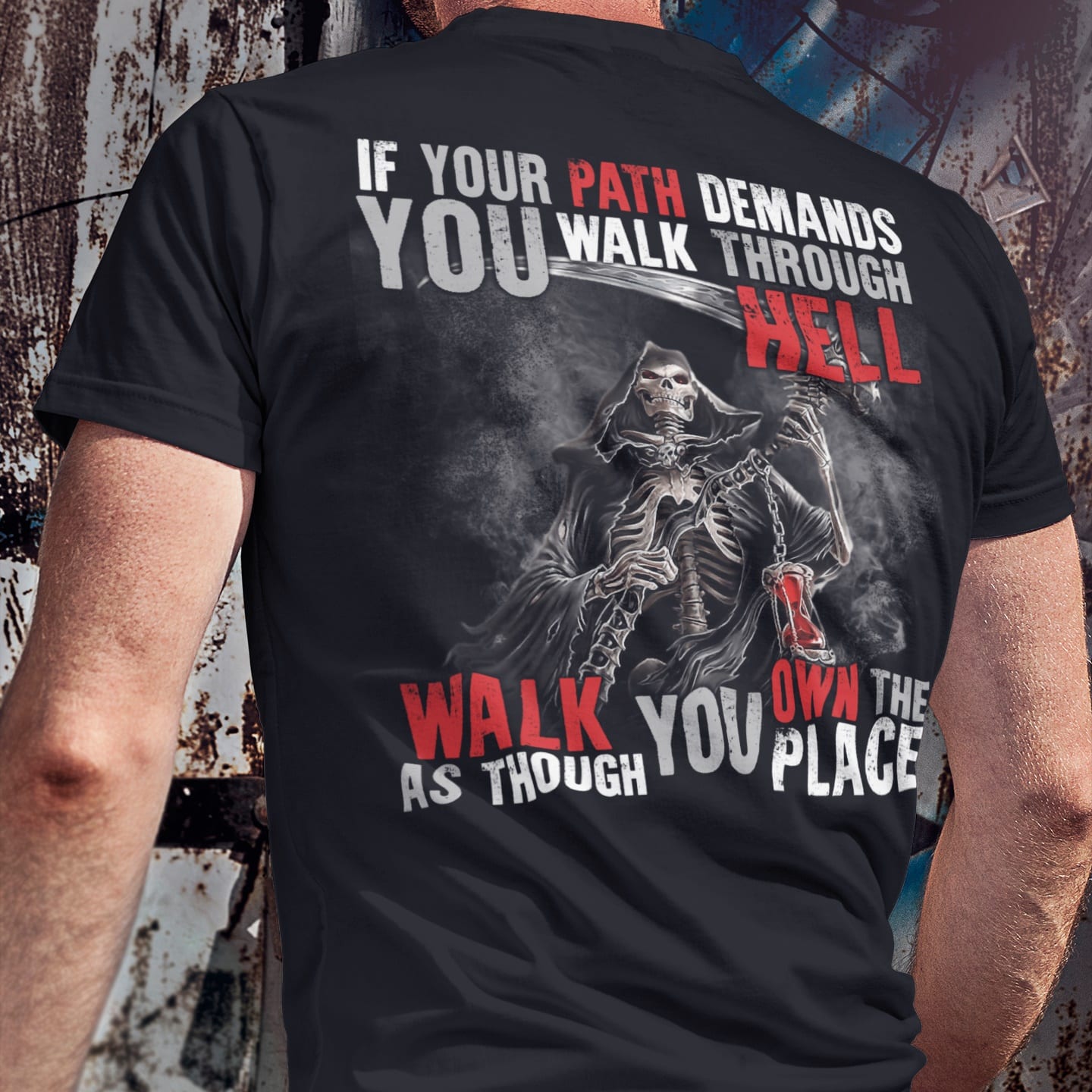 If Your Path Demands You Walk Through Hell Walk As If You Own The Place T-shirt Print On Back