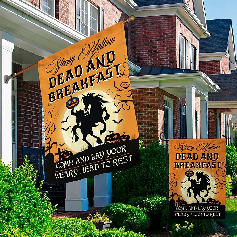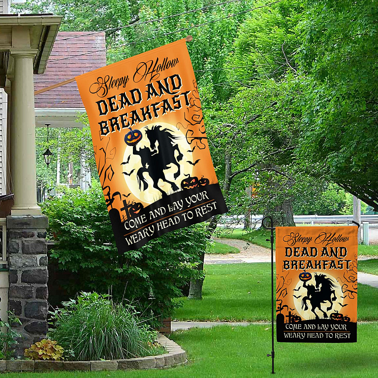 Let’s Shop Sleepy Hollow Dead And Breakfast Halloween Outdoor Indoor Decorative Garden Flag – House Flag – Wall Flag!