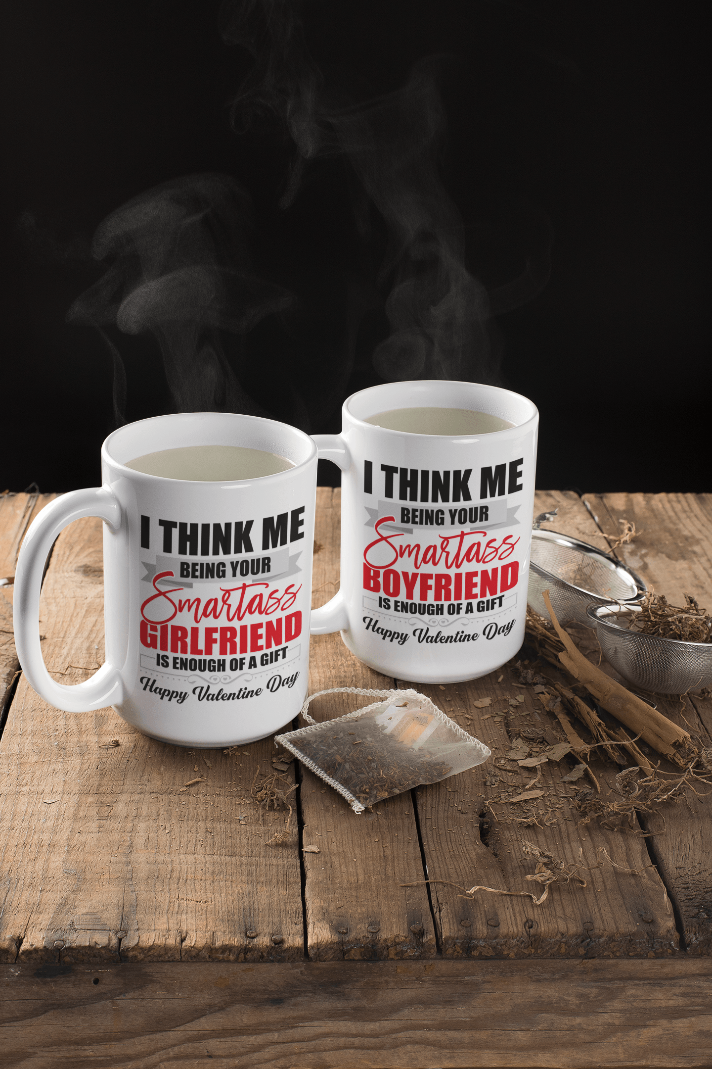 Shop I Think Me Being Your Smartass Boyfriend Is Enough Of A Gift Coffee Mug – Beer Stein – Valentine Gift for Her.