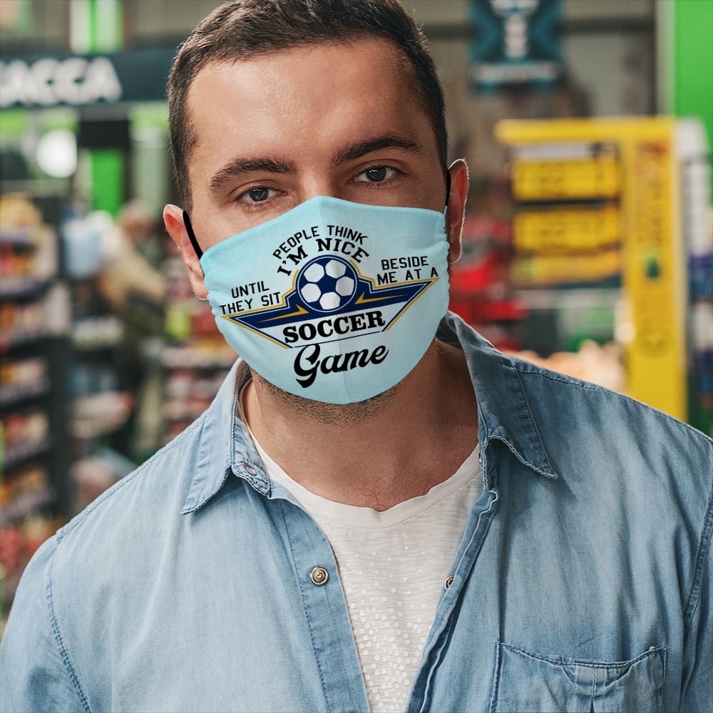 Let’s Shop People Think I’m Nice Until They Sit Beside Me at a Soccer Game Washable Reusable Custom – Printed Cloth Face Mask!