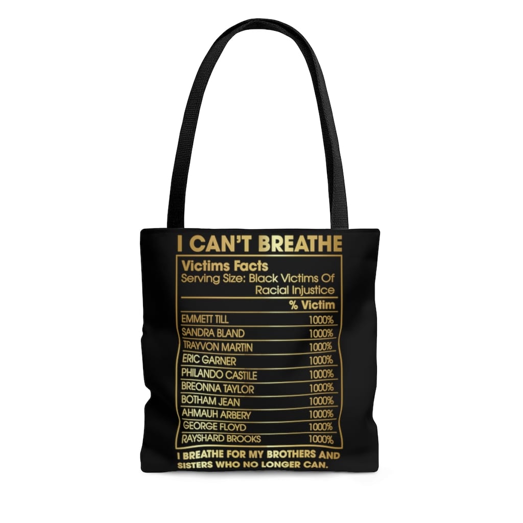 Shop I Can’t Breathe Victims Facts Say Their Names BLM Social Justice Gift All Over Print Tote Bag – Shoulder Bag.