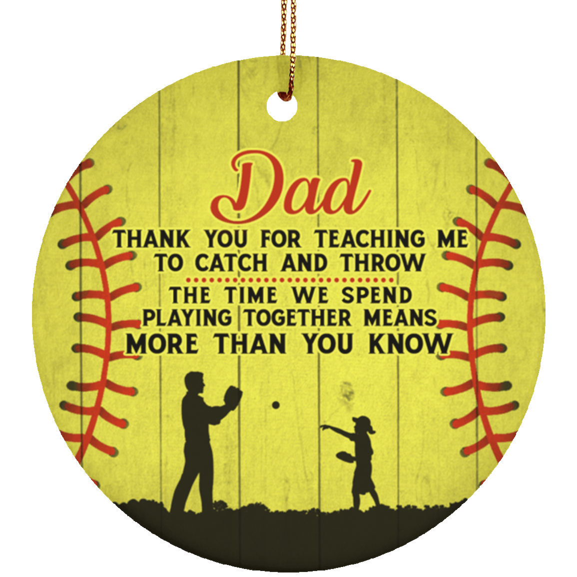 Shop To Dad Thank You For Teaching Me To Catch and Throw The Time We Spend Playing Together Softball Porcelain Ceramic Ornament.