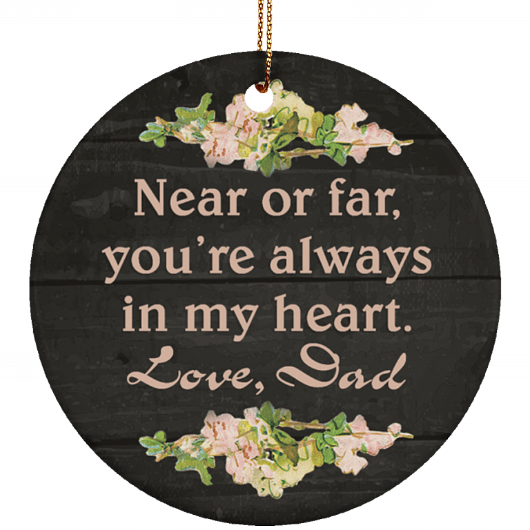 Shop Near Or Far You’re Always In My Heart Love Dad Flat Circle Porcelain Ceramic Ornament Keepsake.