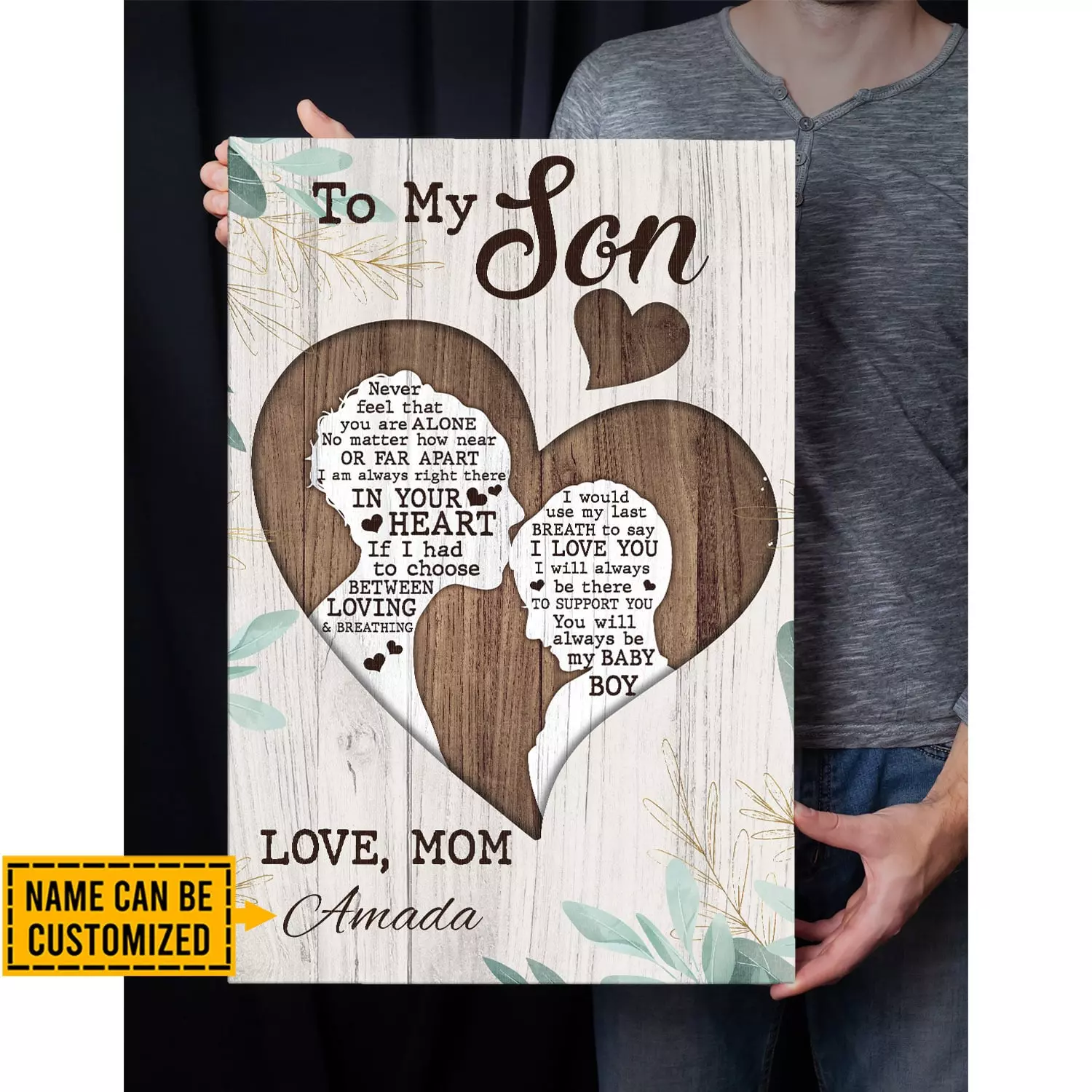Let’s Shop Personalized From Mom To My Son Never Feel That You Are Alone Wrapped Framed Canvas Prints – Unframed Poster!