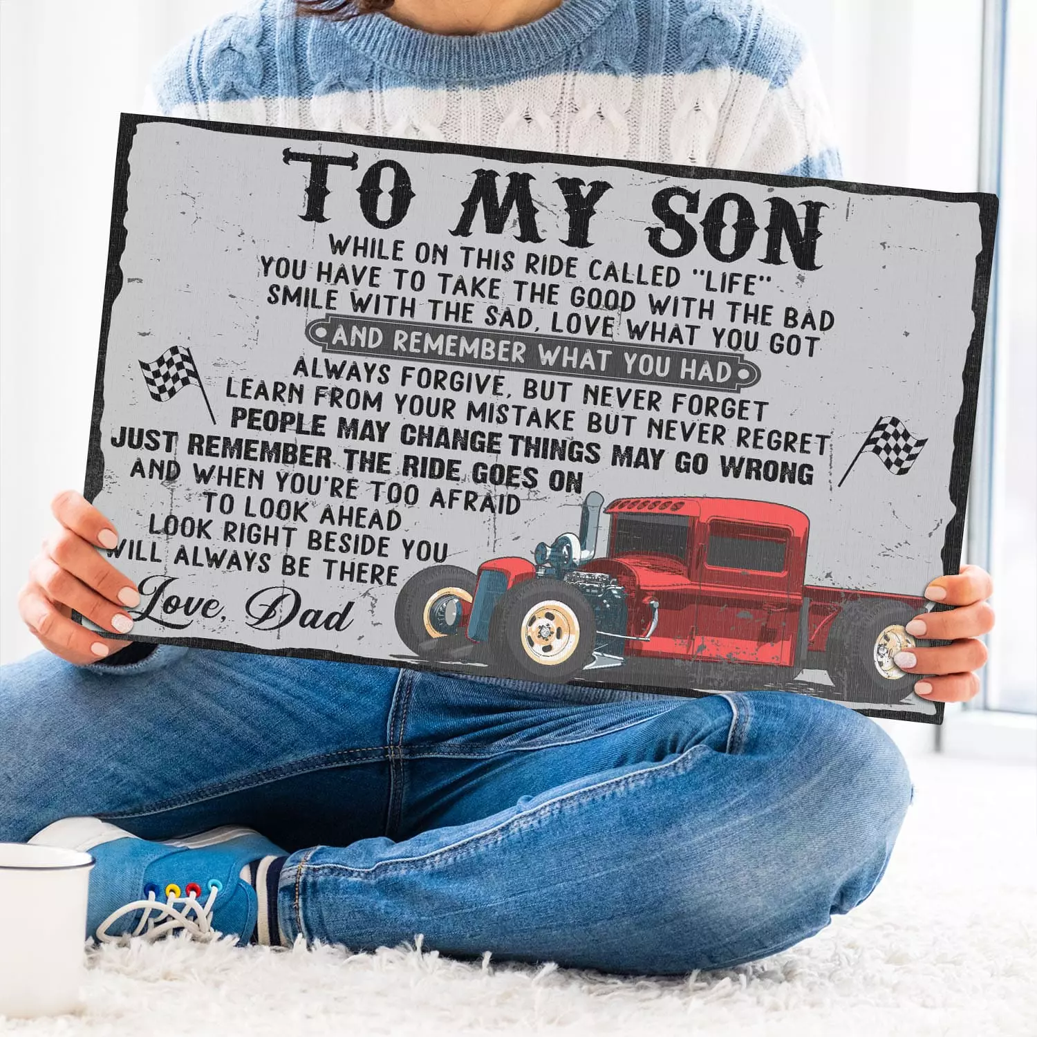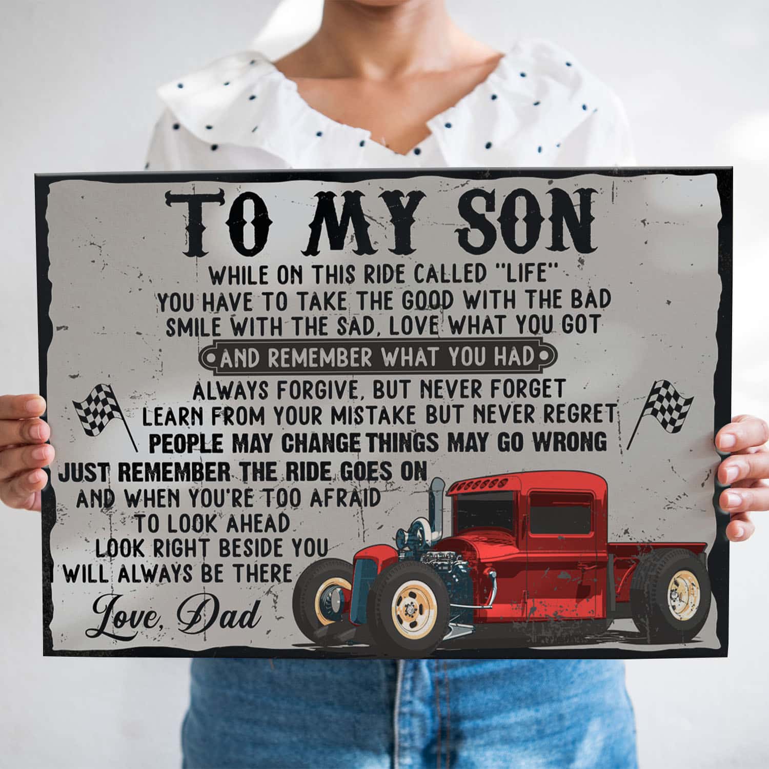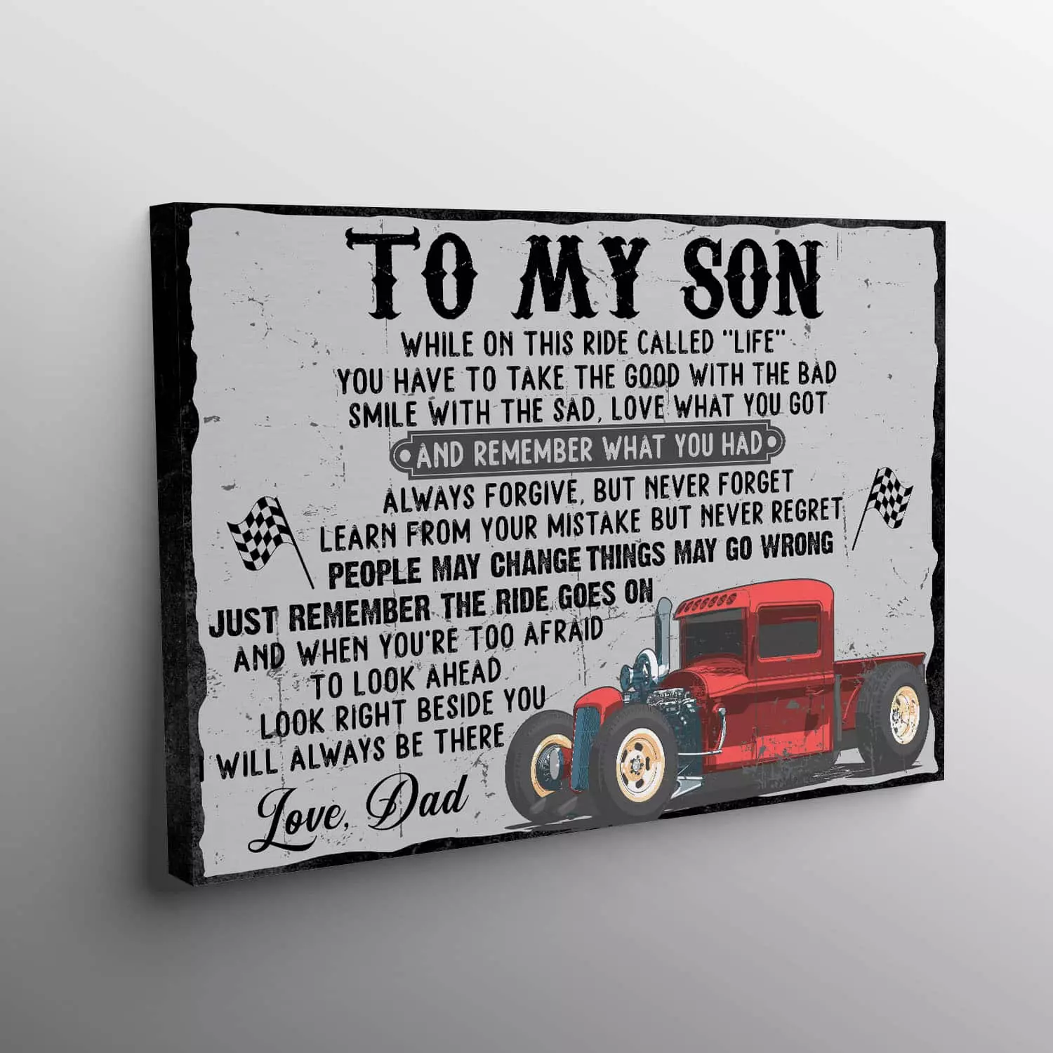 Let’s Shop To My Son While on This Ride Called Life You Have to Take the Good Hot Rod Framed Canvas Prints – Unframed Poster!