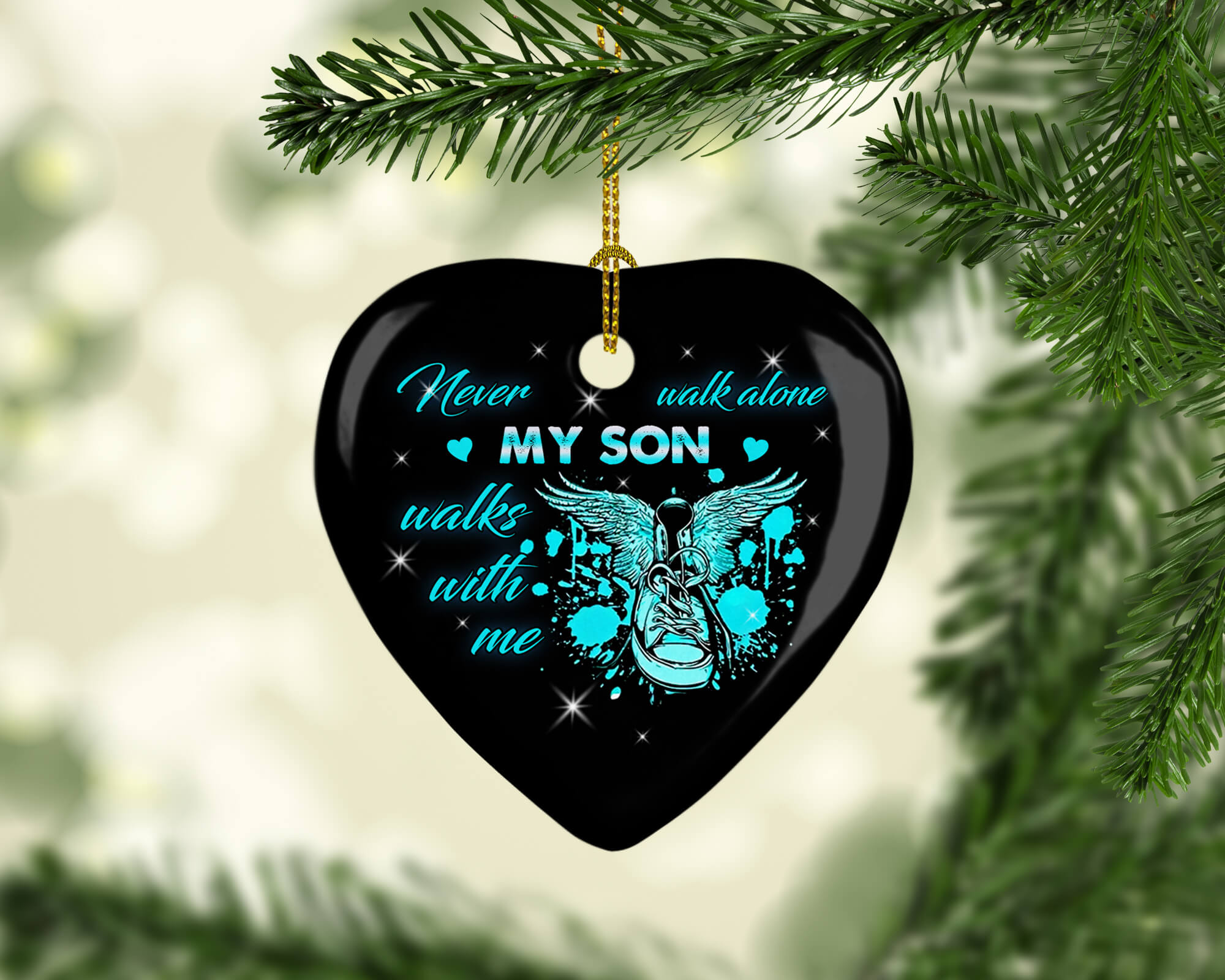 Let’s Shop Never Walk Alone My Son Walks With Me Angel Wings Sneaker Decorative Ornament Keepsake – Holiday Flat Heart Ornament!