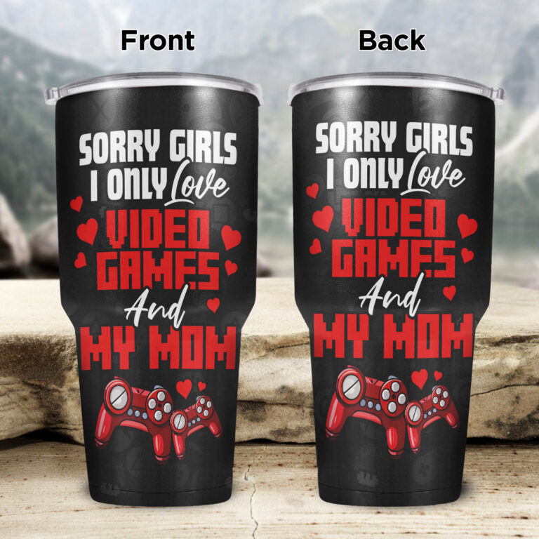 Let’s Shop Sorry Girls I Only Love Video Games And My Mom Funny Valentine Insulated Tumbler Cup With Lid and Straw!