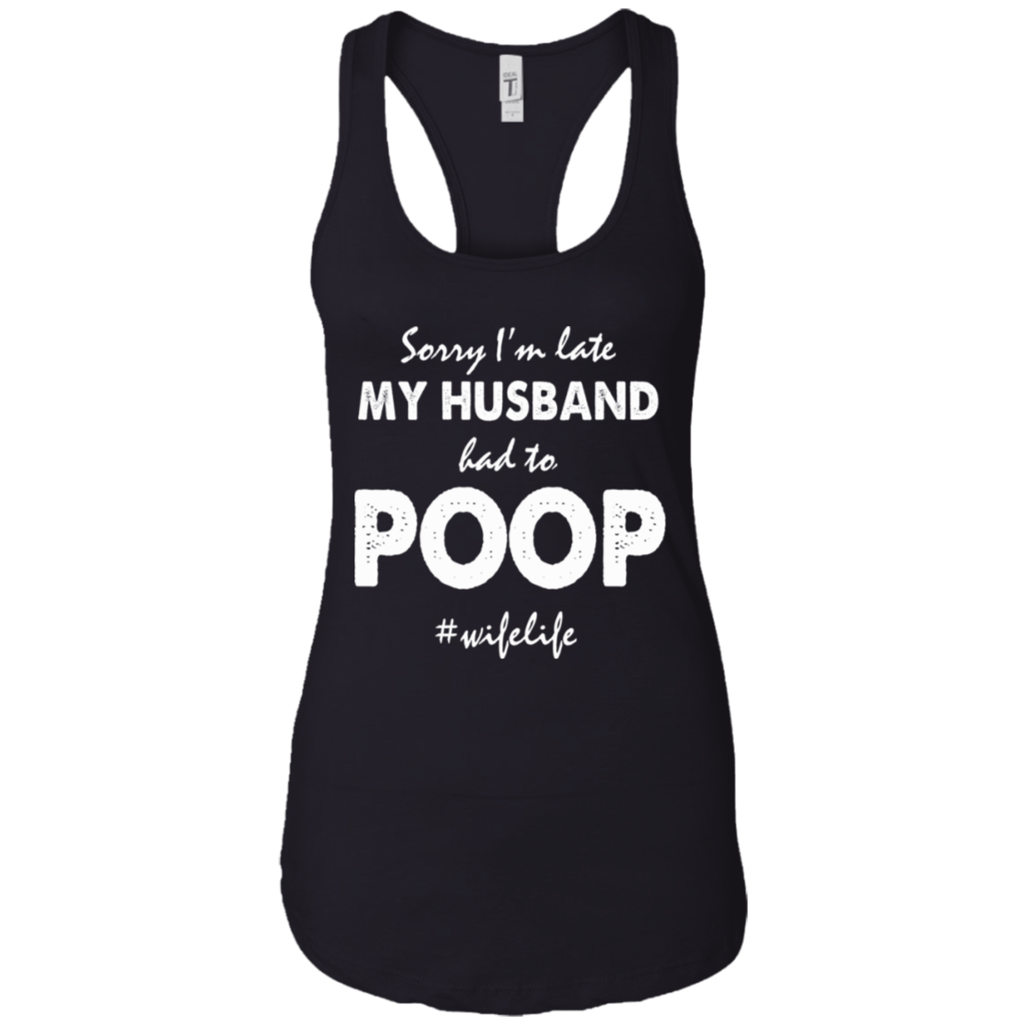 Sorry I’m Late My-Husband Had To Poop Cotton Tank Top Tee – Ladies Racerback Tank