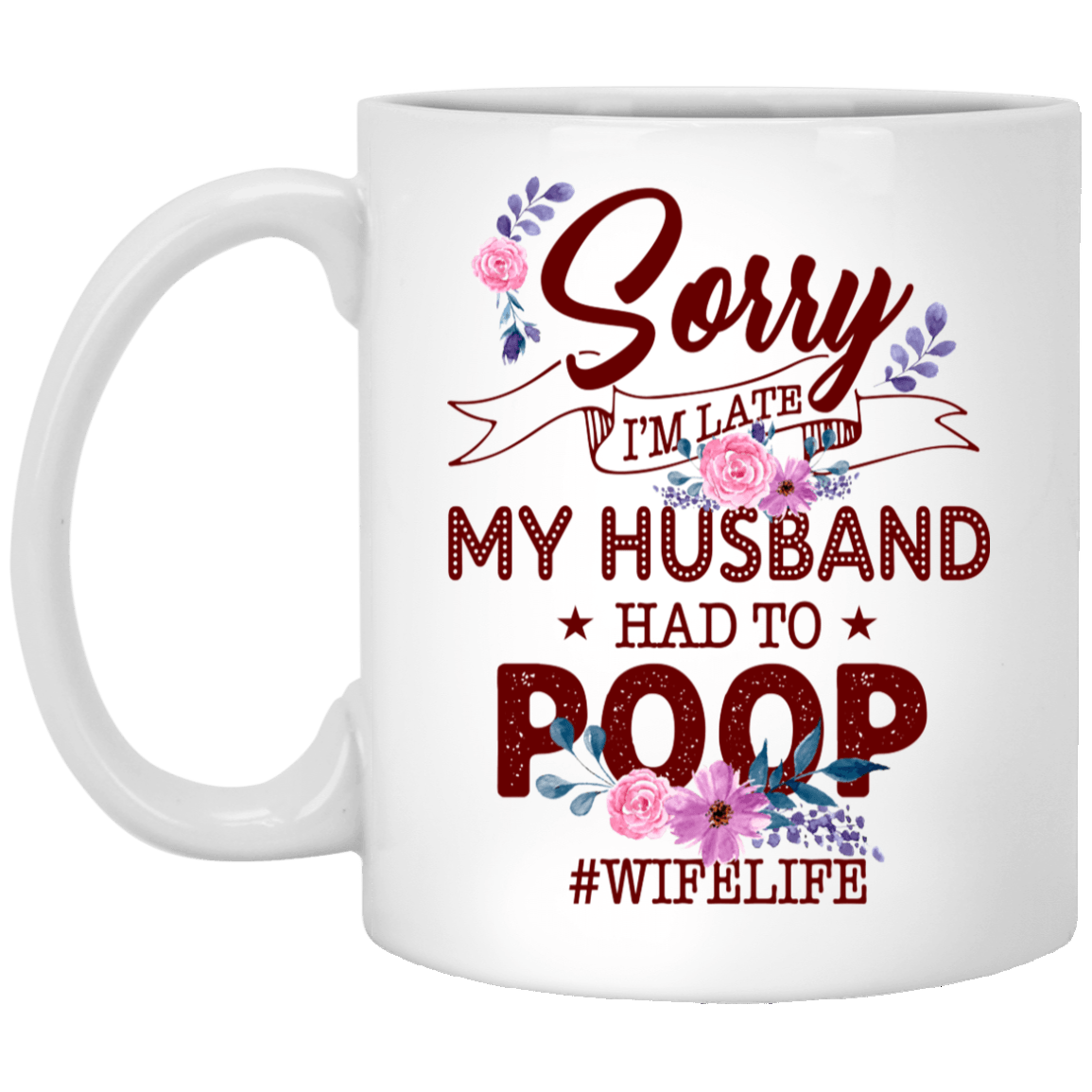 Sorry I’m Late My Husband Had to Poop Wife Life Ceramic Coffee Mug – Beer Stein – Water Bottle