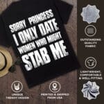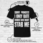 Are you spending too much time to find creative merchandise for you or suitable & special gifts for your mommy, your daddy, your son, your daughter, your children, your friends or someone you love? The struggle is over because we have various Sorry Princess Shirt, Sorry Princess Back Shirt, Sorry Princess I Only Date Women Who Might Stab Me Back Shirt, Funny Back Shirt, Sorry Princess I Only Date Women Shirt, Sorry Princess I Only Date Women Back Shirt which will make perfect presents for your beloveds. In order to make your present stand out, we have created lots of unique and awesome customized photo gifts & personalized designs.