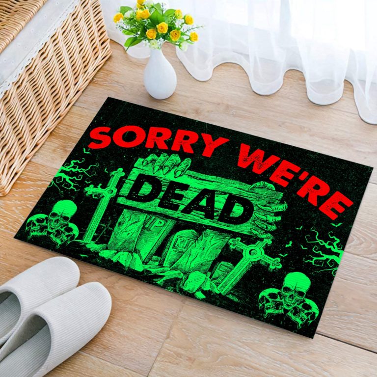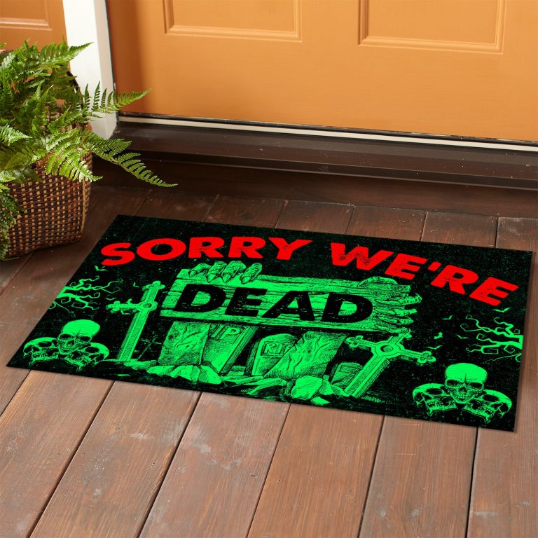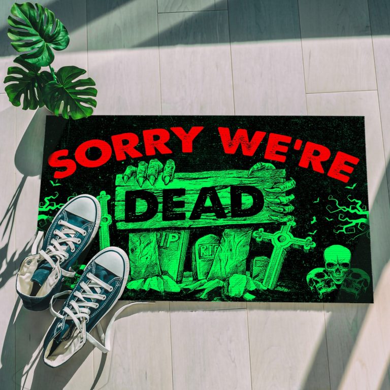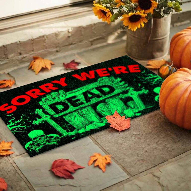 Let’s Shop Sorry We’re Dead Halloween Indoor Outdoor Doormat – Funny Zombie Halloween Decor Ideas!