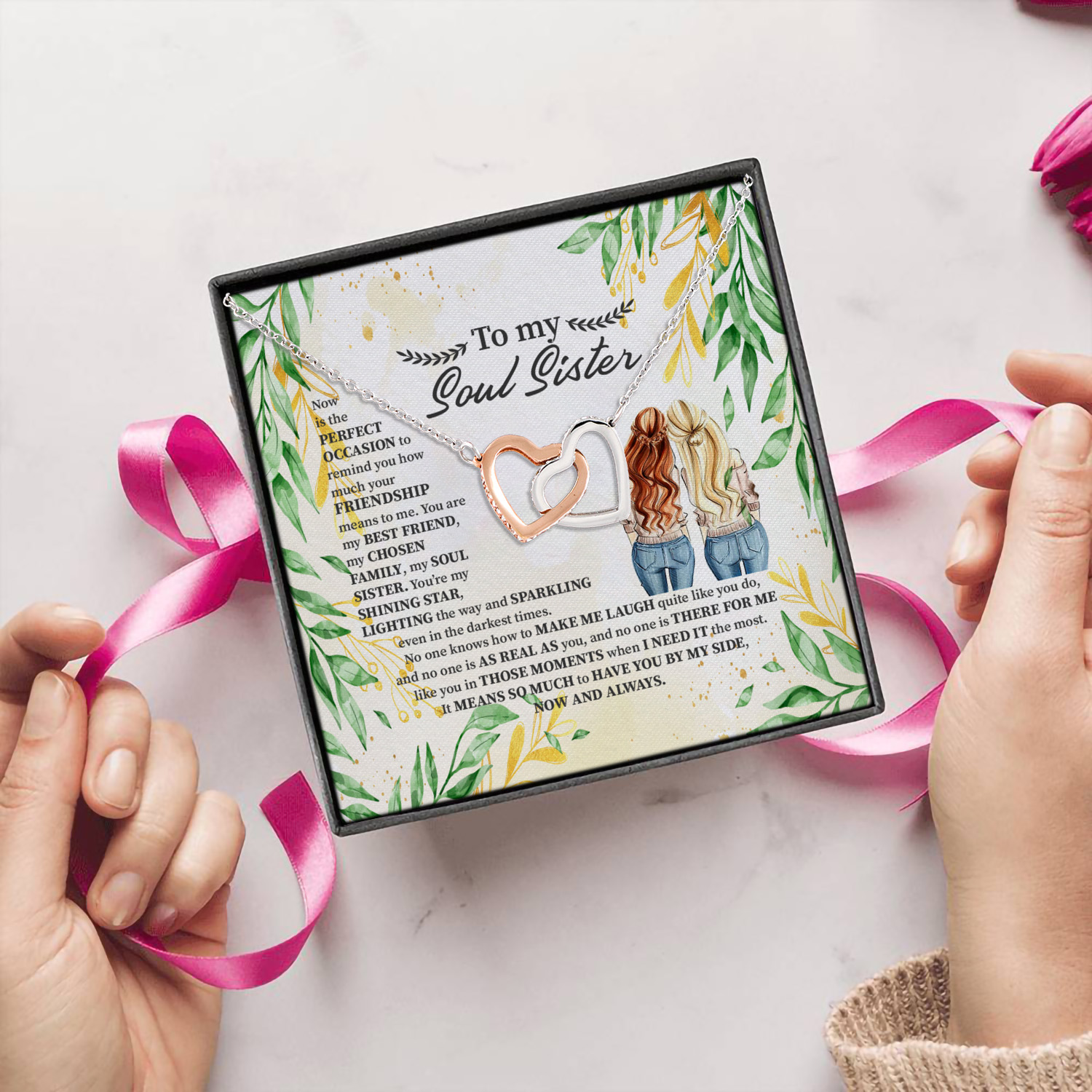 Let’s Shop To My Soul Sister Interlocking Hearts Pendant Necklace!