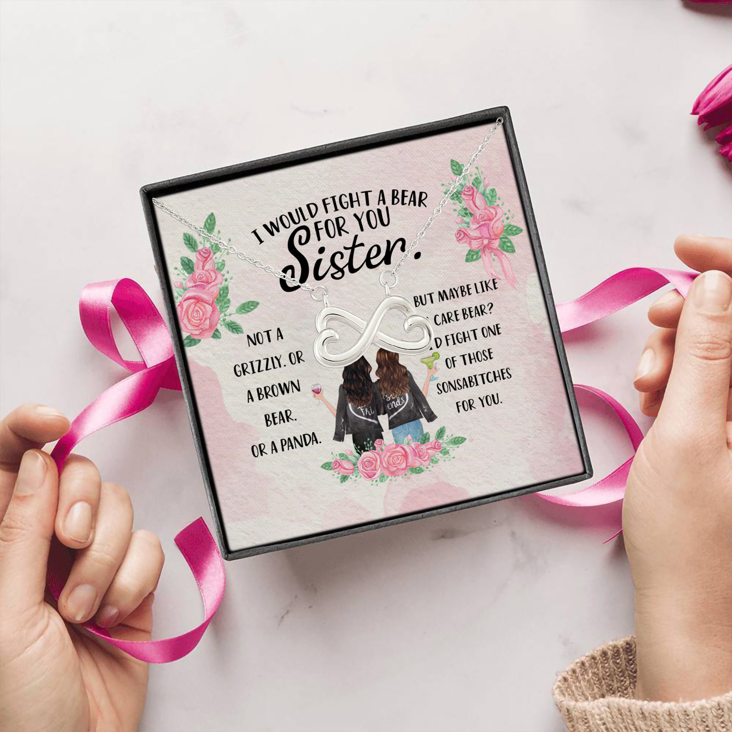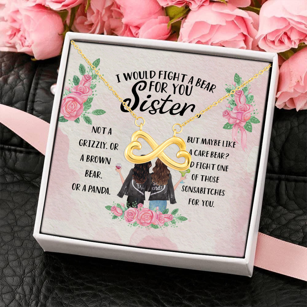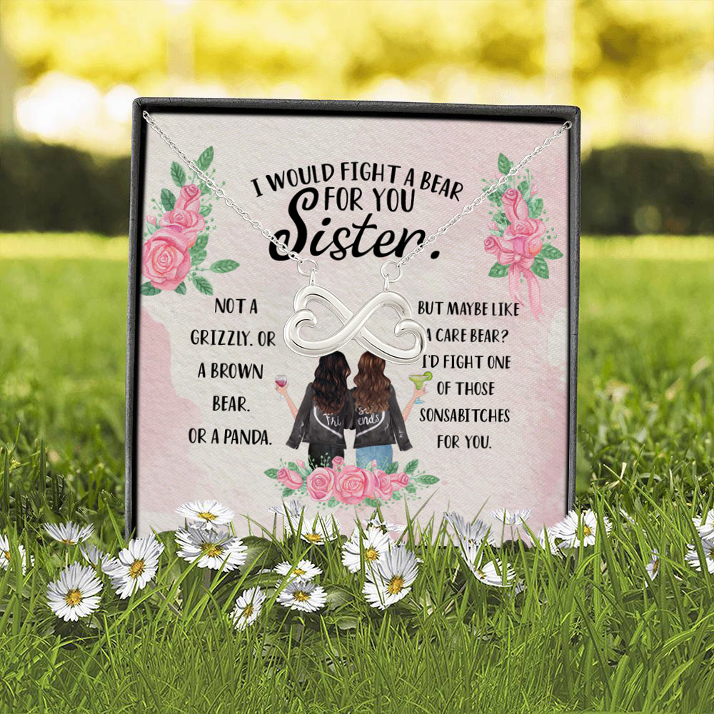 Let’s Shop I Would Fight a Bear for You Sister Not a Grizzly or a Brown Bear Infinity Heart Pendant Necklace!