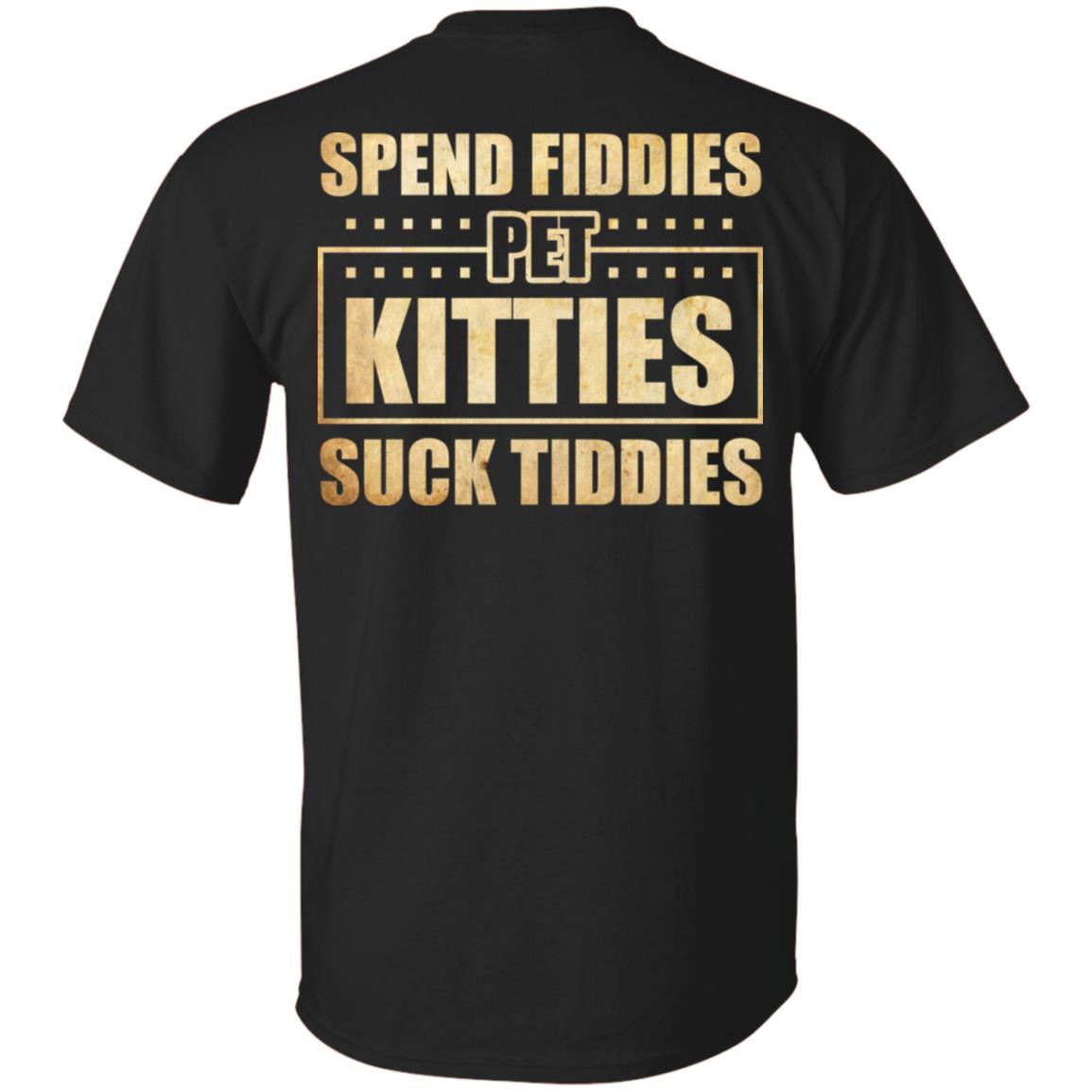Spend Fiddies Pet Kitties Suck Tiddies Funny Cat Lovers Print On Back T-shirt – V-neck Tee