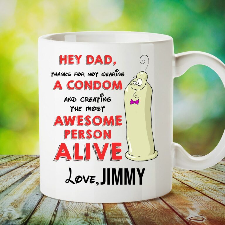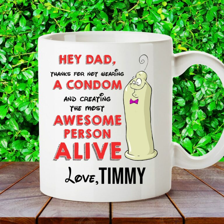 Let’s Shop Personalized Dad Thanks For Not Wearing A Condom And Creating The Most Awesome Person Alive Ceramic Coffee Mug!