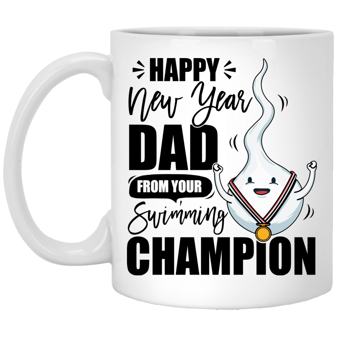 Shop Happy New Year Dad From Your Swimming Cham-pion Ceramic Coffee Mug-Beer Stein-Water Bottle-Color Changing Mug.