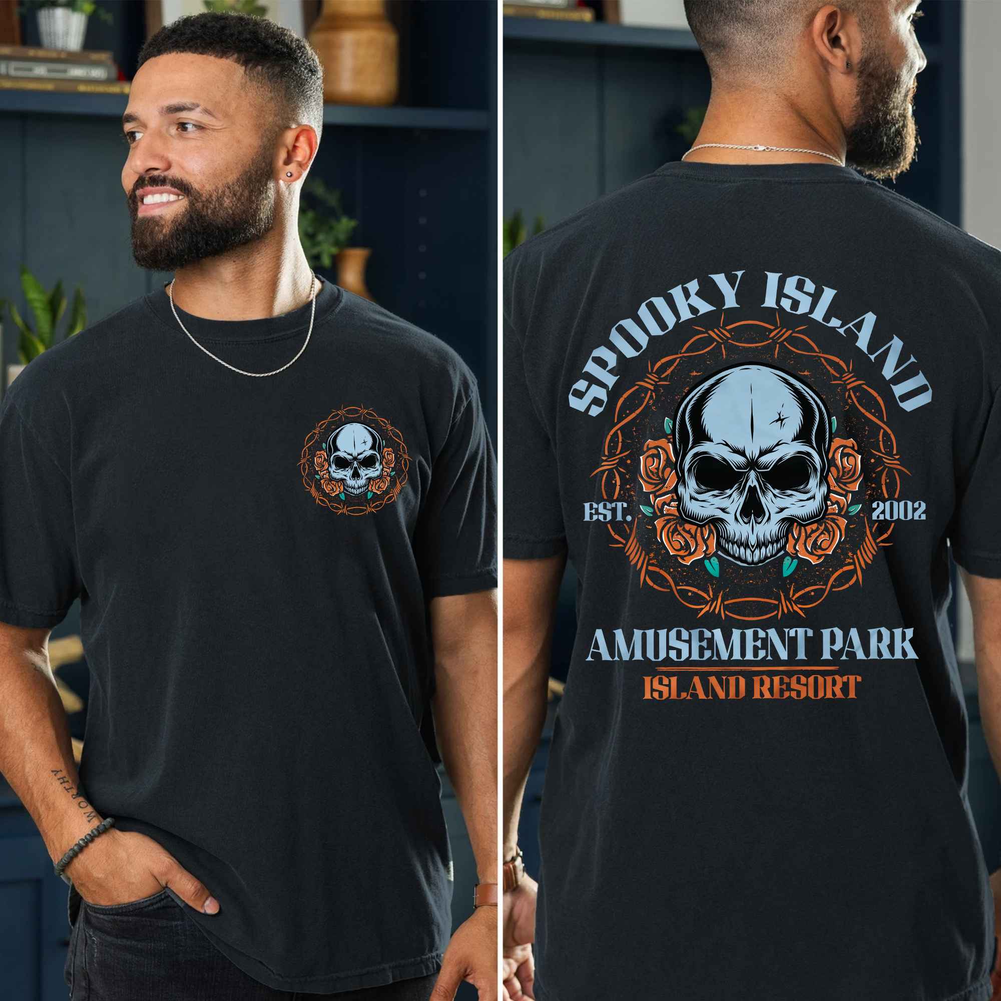 Spooky Island EST 2002 Amusement Park Island Resort Printed On 2 Sides T-Shirt