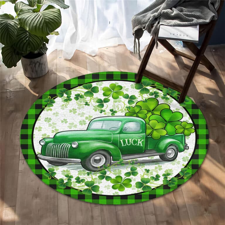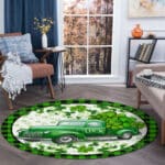 Let’s Shop St Patricks Day Green Shamrock Leaf Car Truck Irish Mat Home Decor Rug – Irish Lucky Shamrocks Round Rug Floor Mat!