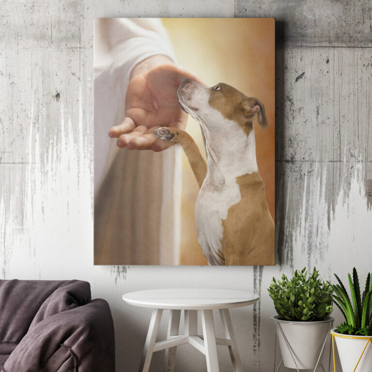 Let’s Shop Staffordshire Terrier Take My Hand Jesus Framed Canvas Prints – Unframed Poster – Staffordshire Memorial Wall Art!
