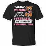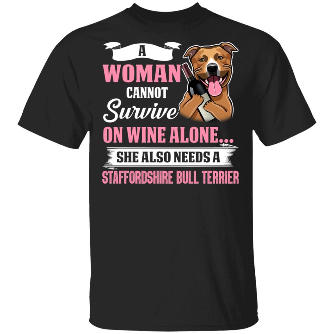 A Woman Cannot Survive On Wine Alone She Also Needs A Staffordshire Bull Terrier T-Shirt