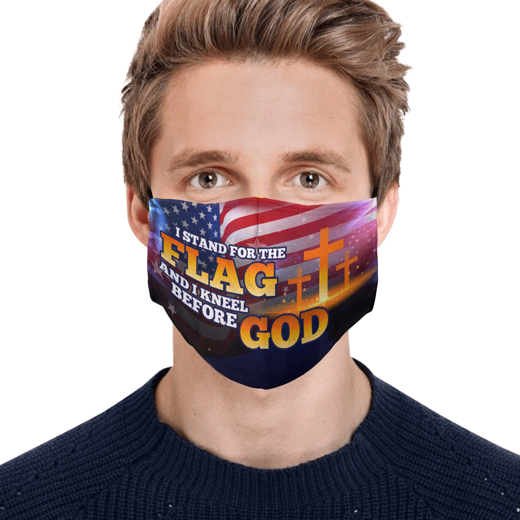I Stand For The Flag and I Kneel Before God Washable Reusable Custom – Printed Cloth Face Mask Cover