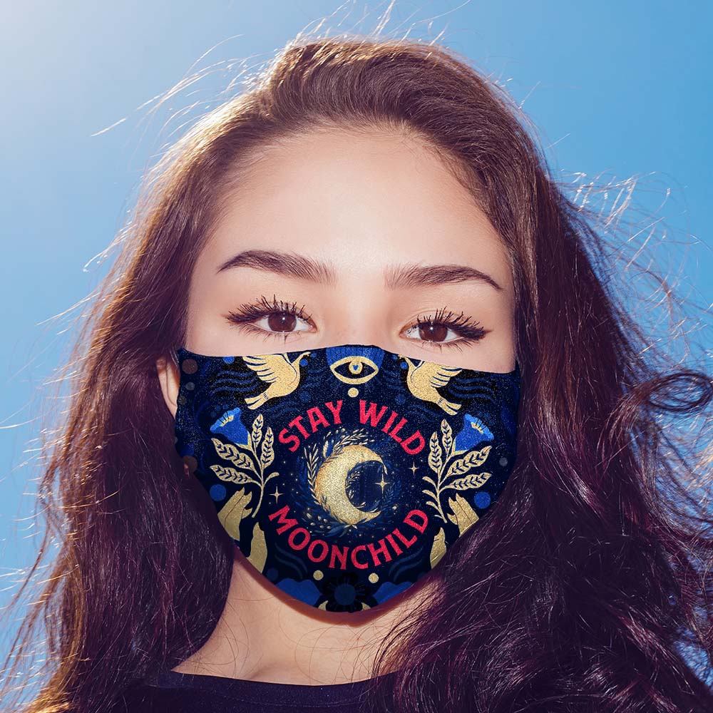 Stay Wild Moon Child Hippie Washable Reusable Custom – Printed Cloth Face Mask Cover