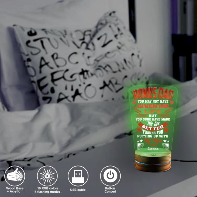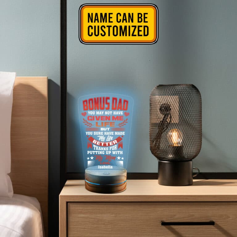 At CubeBik, besides 2D Night Light, we also offer tees, hoodies, sweaters, raglans, tanks, wall arts, canvases, posters, mugs, blankets, engraved jewelry, personalized necklaces, printed face masks, throw pillows, tote bags, hats, accessories and more on our website, so do not miss our other Step Dad Birthday Gift, Step Father Birthday Gift Ideas, Step Dad Birthday Presents, Fathers Day Gifts 2022, Father’s Day Gift Ideas 2022, Bonus Dad Shirt, Step Dad Lighting Gift, Bonus Dad You May Not Have Given Me Life Shirt, Thanks for Putting Up with My Mom Shirt, Funny Step Dad Shirts, Dad Step Dad Shirt, Step Dad Fathers Day Gift related merchandise. Moreover, all the products are made-to-order and one of a kind custom designs you can’t get elsewhere in normal stores. Let’s discover CubeBik.com now and find your favorite personalized items. We can’t wait to surprise and build beautiful memories with you and your loved ones.