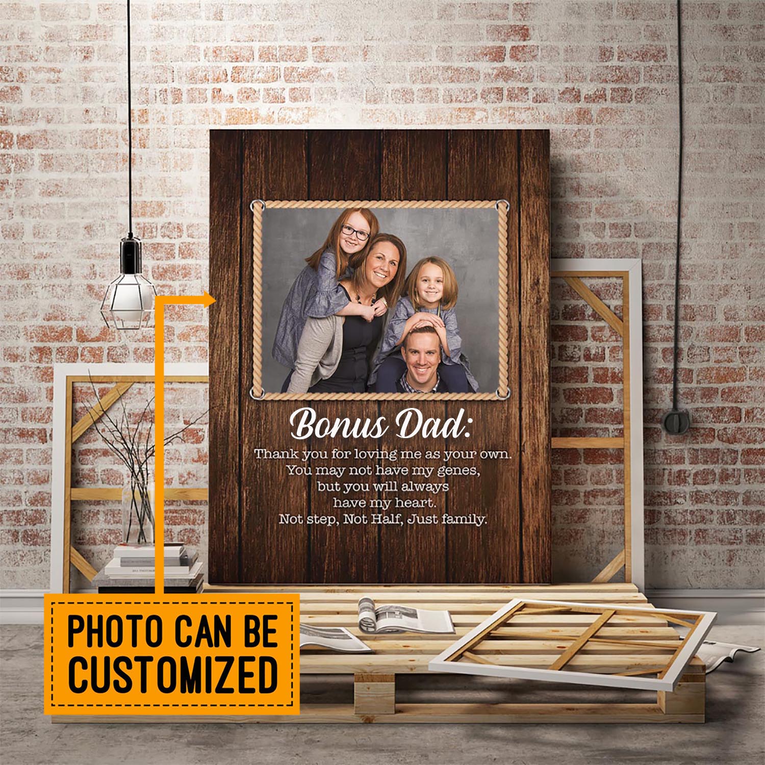 Let’s Shop Personalized Photo Bonus Dad Thanks For Loving Me As Your Own Gallery Wrapped Framed Canvas Prints – Unframed Poster!