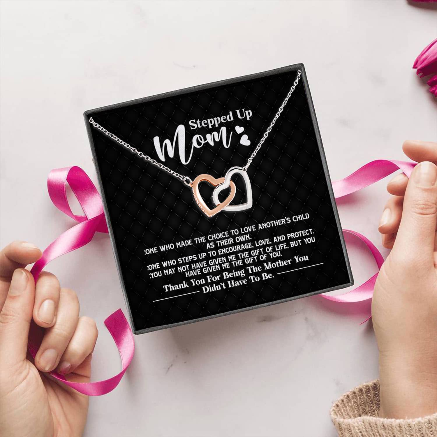 Let’s Shop Stepped Up Mom One Who Made The Choice To Love Another’s Child As Their Own Interlocking Hearts Pendant Necklace!