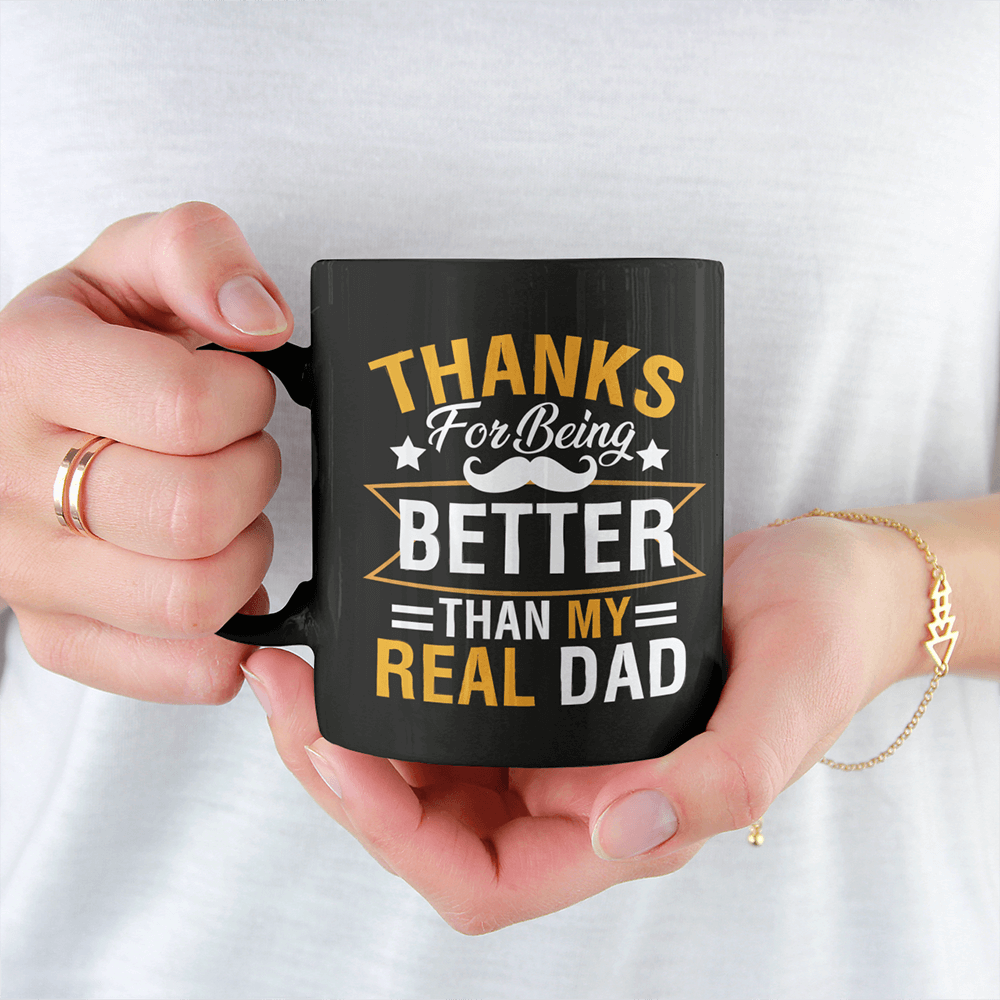 Let’s Shop Funny Stepdad Gift Thanks for Better Than My Real Dad Coffee Mug – Beer Stein – Water Bottle!
