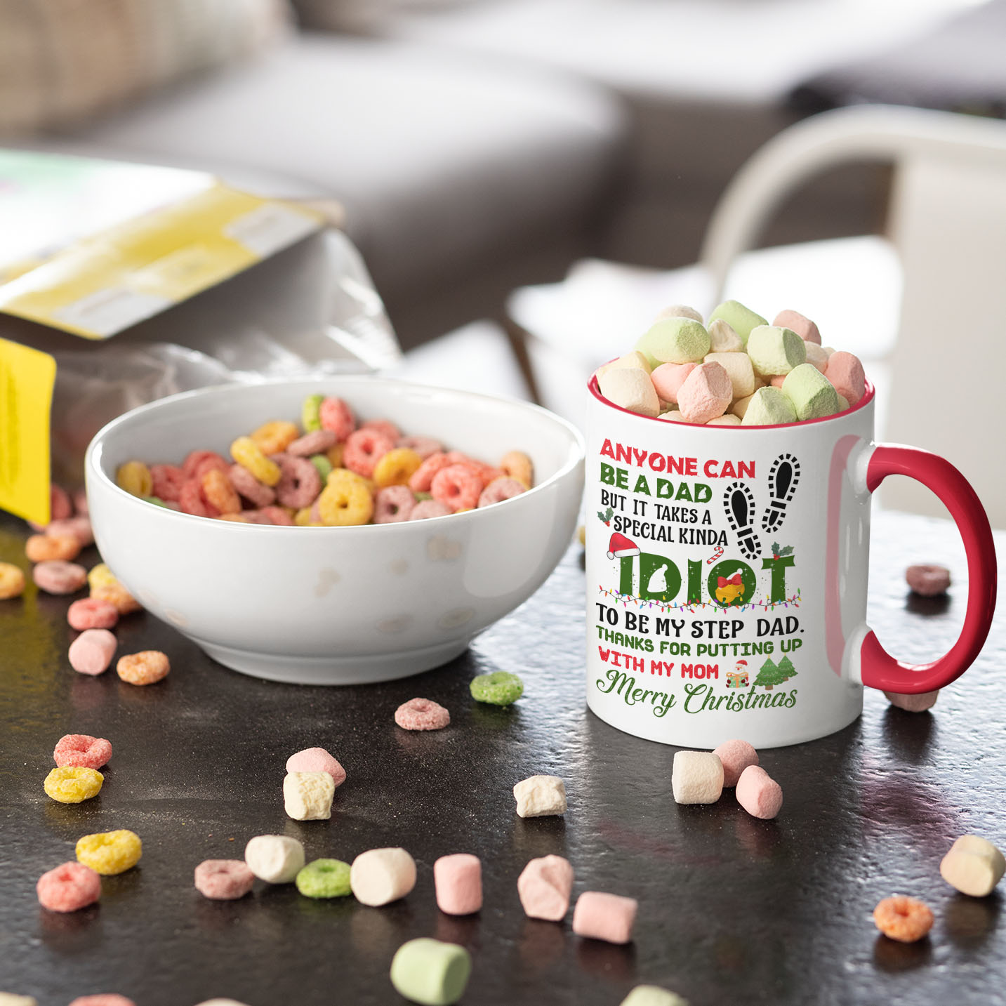 Let’s Shop Anyone Can Be A Dad But It Takes A Special Kinda Idiot To Be My Step Dad Merry Christmas Accent Coffee Mug!