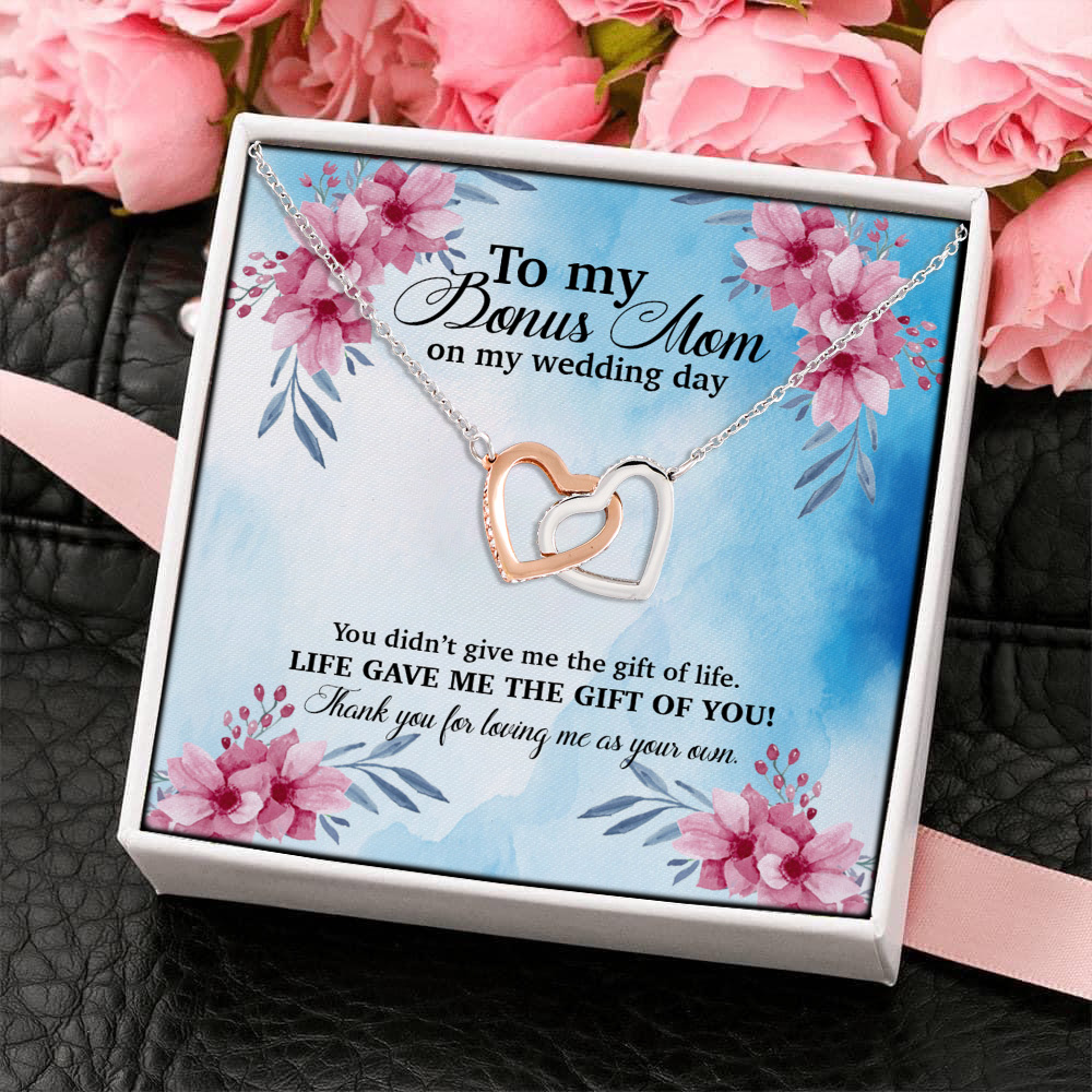 Let’s Shop To My Bonus Mom On My Wedding Day You Didn’t Give Me The Gift Of Life Interlocking Hearts Pendant Necklace!
