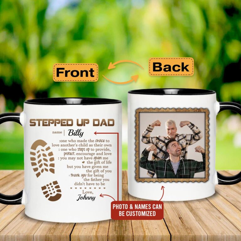 At CubeBik, besides mugs, we also offer tees, hoodies, sweaters, raglans, tanks, wall arts, canvases, posters, blankets, engraved jewelry, personalized necklaces, printed face masks, throw pillows, tote bags, hats, accessories and more on our website, so do not miss our other Stepped up Dad One Who Made the Choice To, Stepdad Birthday Gifts, Stepped up Dad Gifts, Stepped up Dad Custom Gifts, Gift for Step Dad, Stepped Dad Custom, to My Stepped, to My Stepped Mug, Daughter Stepped, Stepped up Dad, up Dad Mugs related merchandise. Moreover, all the products are made-to-order and one of a kind custom designs you can’t get elsewhere in normal stores. Let’s discover CubeBik.com now and find your favorite personalized items. We can’t wait to surprise and build beautiful memories with you and your loved ones.