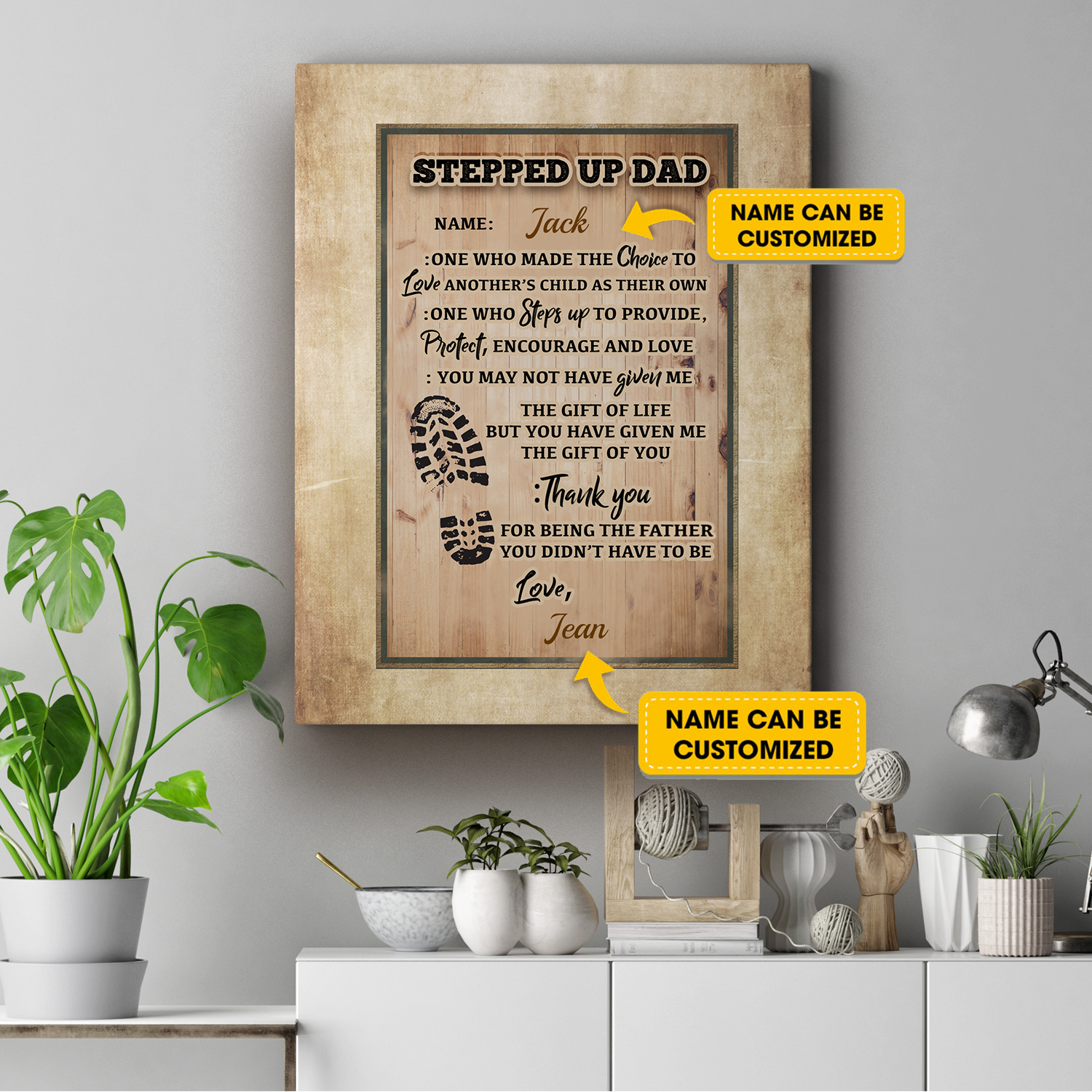 Let’s Shop Personalized Stepped Up Dad One Who Made the Choice to Love Another Wrapped Framed Canvas – Unframed Poster!