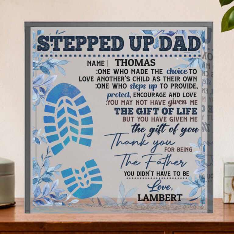 At CubeBik, besides Acrylic Plaque, we also offer tees, hoodies, sweaters, raglans, tanks, wall arts, canvases, posters, mugs, blankets, engraved jewelry, personalized necklaces, printed face masks, throw pillows, tote bags, hats, and more on our website, so do not miss our other Home Decor, Fathers Day Gifts, Dad Birthday Gift, Step Up, Fathers Day Gifts from Daughter, Customized Gifts, Birthday Gifts for Dad, Fathers Day, Dad Gifts from Daughter, Father’s Day Gifts, Fathers Day Gifts from Wife related merchandise. Moreover, all the products are made-to-order and one of a kind custom designs you can’t get elsewhere in normal stores. Let’s discover CubeBik.com now and find your favorite personalized items. We can’t wait to surprise and build beautiful memories with you and your loved ones.