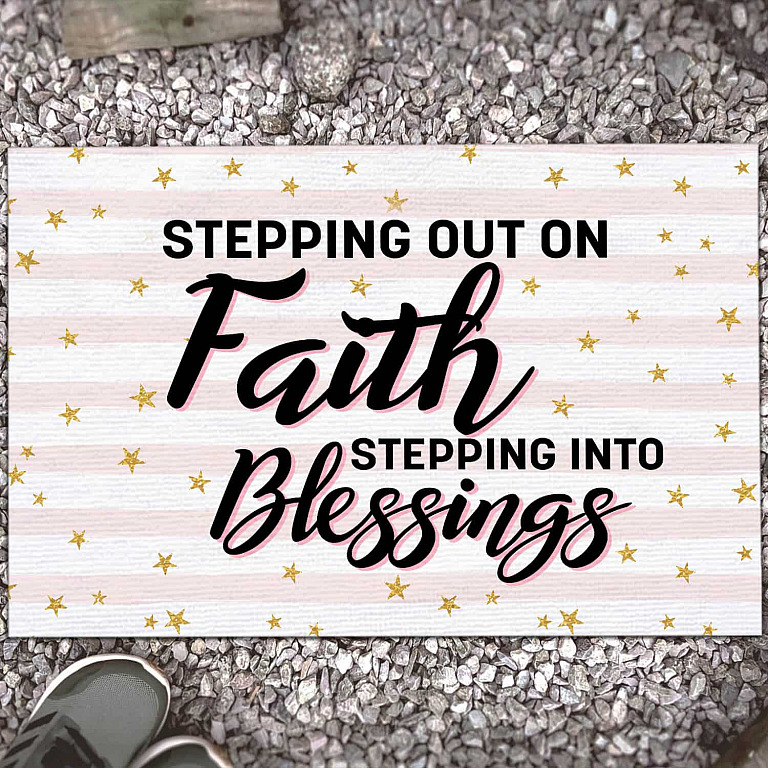 Let’s Shop Stepping Out On Faith Stepping Into Blessings Funny Indoor Outdoor Decorative Doormat!