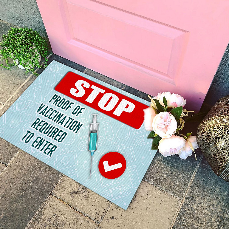 Let’s Shop Stop Proof Of Vaccination Require To Enter Outdoor Indoor Doormat – Get Vaccinated Door Mat Entry Rug!