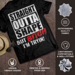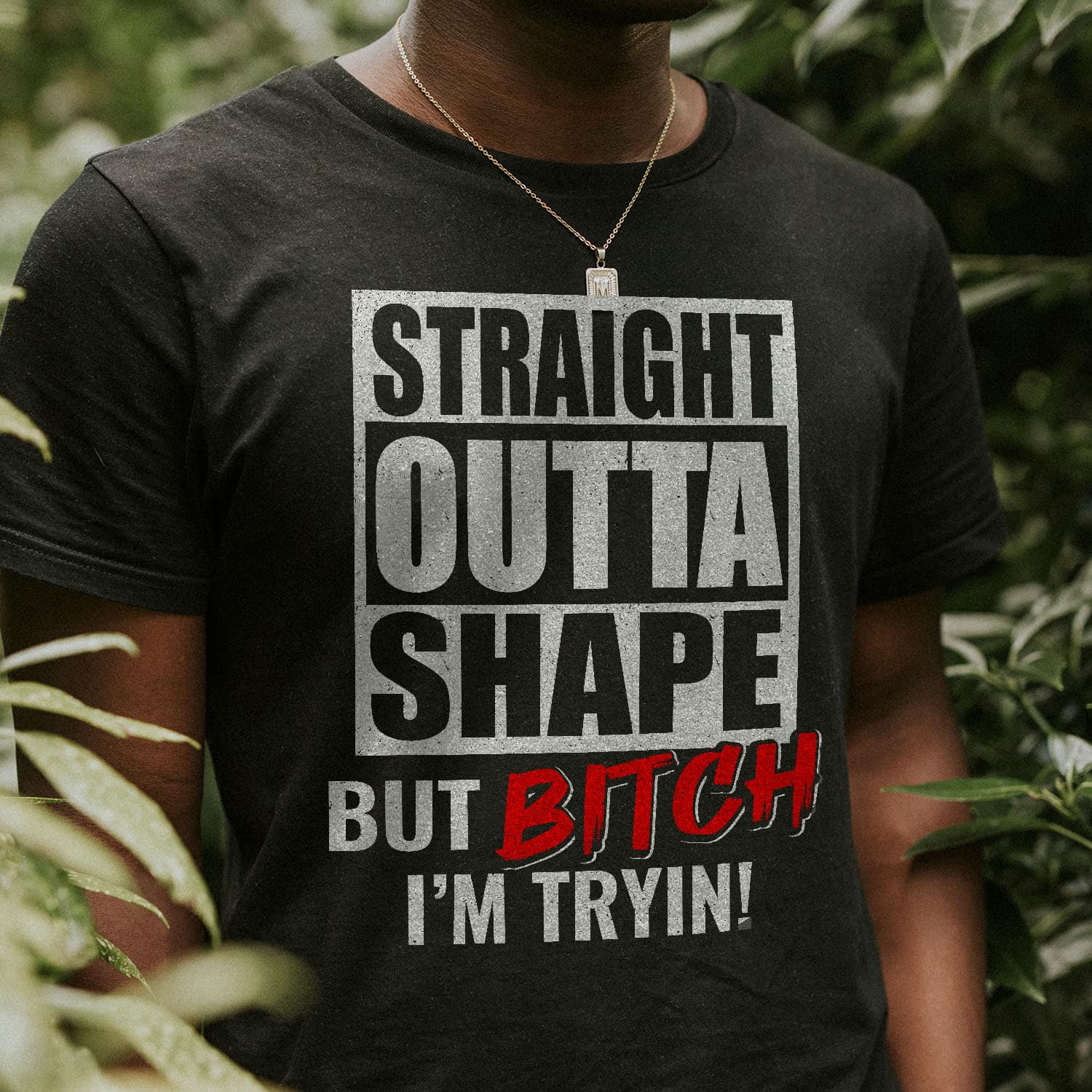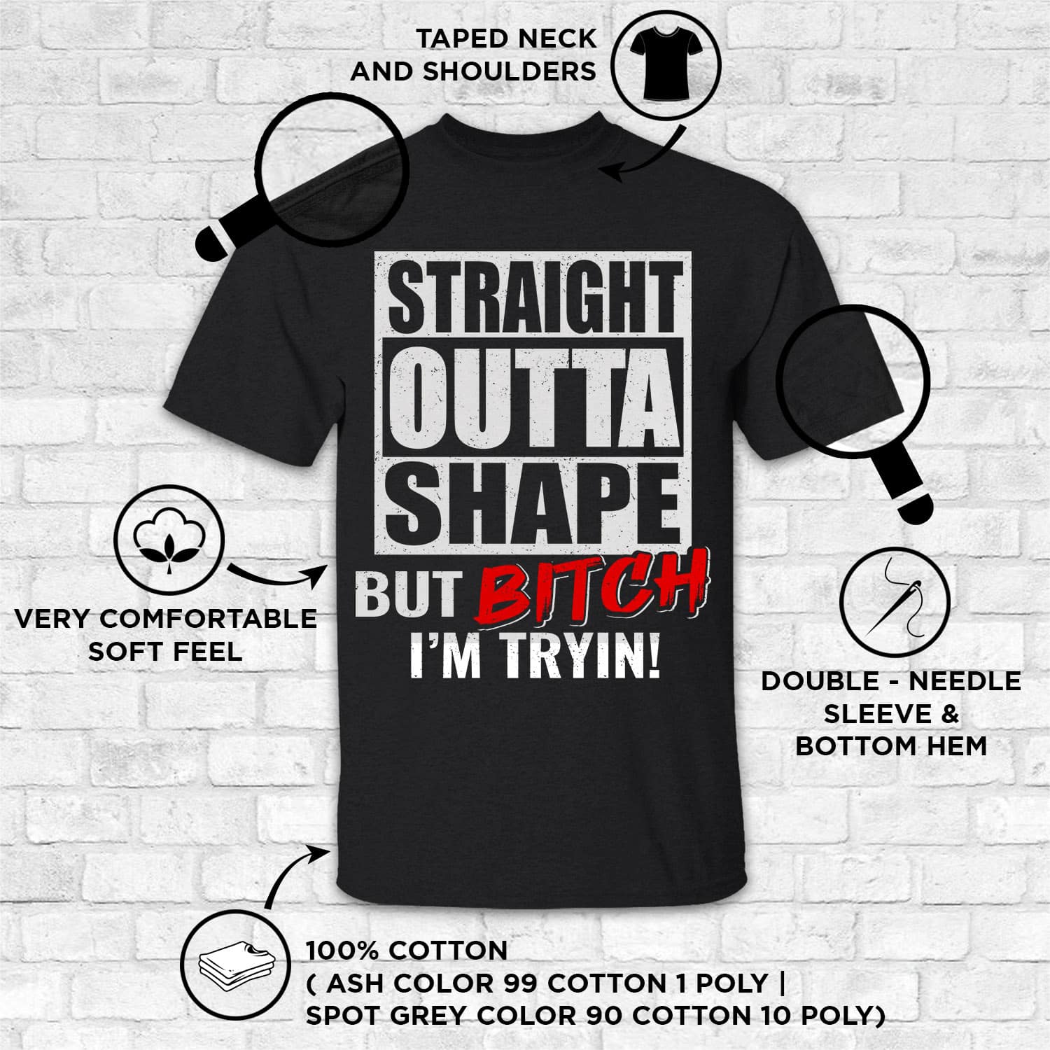 Are you spending too much time to find creative merchandise for you or suitable & special gifts for your mommy, your daddy, your son, your daughter, your children, your friends or someone you love? The struggle is over because we have various Straight Outta Shape But Btch I’m Tryin Shirt, Straight Outta Shape Shirt, Straight Outta Shape Hoodie, Funny Shirt, Straight Outta Shape Funny Shirt, Straight Outta Hoodie which will make perfect presents for your beloveds. In order to make your present stand out, we have created lots of unique and awesome customized photo gifts & personalized designs.
