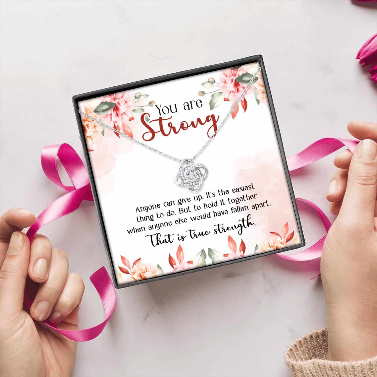 Let’s Shop You Are Strong Survivor Love Knot Necklace – Cancer Recovery Affirmation Jewelry Encouragement Gifts!
