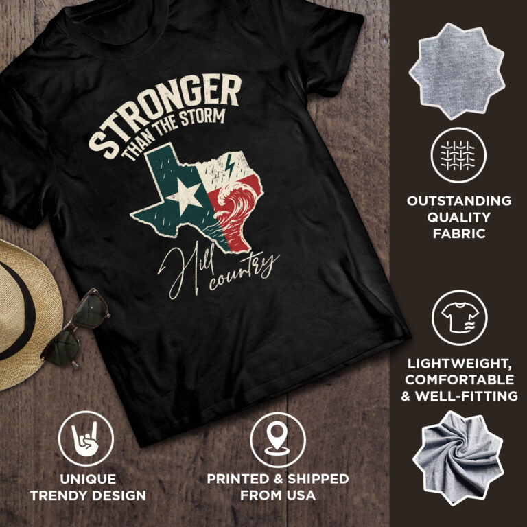 At CubeBik, besides custom apparel, we also offer tees, hoodies, sweaters, raglans, tanks, wall arts, canvases, posters, mugs, blankets, engraved jewelry, personalized necklaces, printed face masks, throw pillows, tote bags, hats, accessories and more on our website, so do not miss our other Texas Stronger Than Storm T-Shirt, Texas Stronger Than the Storm Shirt, Pray for Texas Hill Country 2025 Texas Stronger Than Storm T-Shirt, Texas Stronger Than the Storm Pray for Texas Hill Country T-Shirt, Texas Strong Shirt, Texas Strong Shirt Hill Country. Moreover, all the products are made-to-order and one of a kind custom designs you can’t get elsewhere in normal stores. Let’s discover CubeBik.com now and find your favorite personalized items. We can’t wait to surprise and build beautiful memories with you and your loved ones.