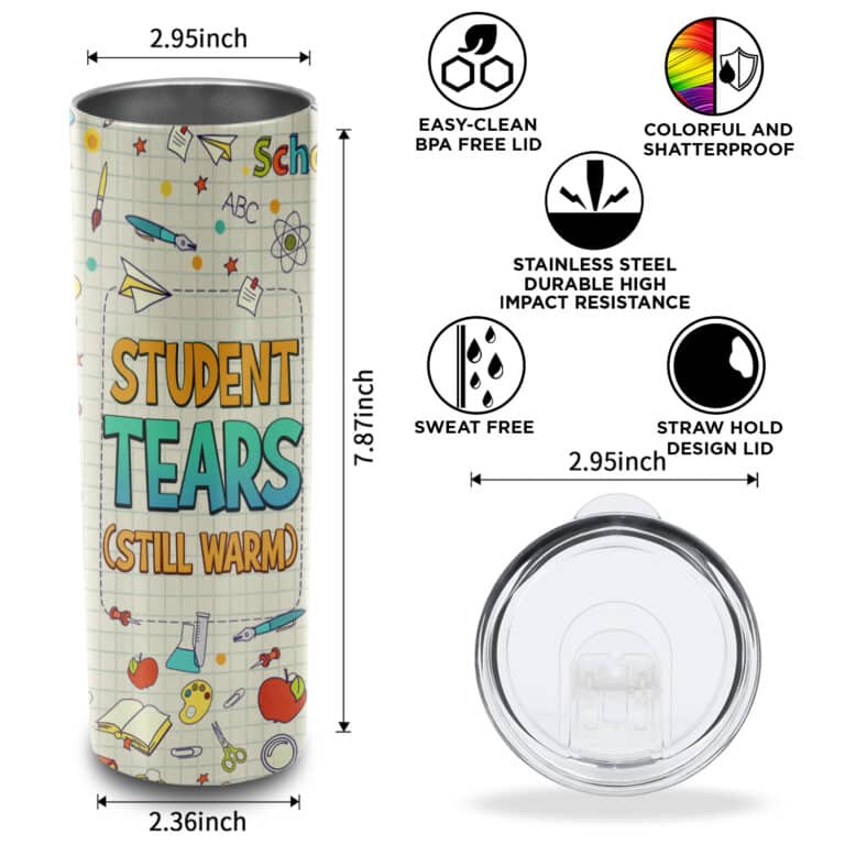 Let’s Shop Student Tears Insulated Skinny Tumbler Cup with Lid – Still Warm Funny Teacher Gift Double Wall Vacuum Travel Coffee Mug!