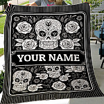 Let’s Shop Personalized Sugar Skull Rose Fleece Blanket – Mink Blanket – Woven Blanket!