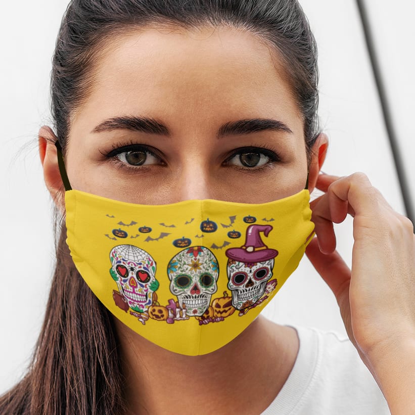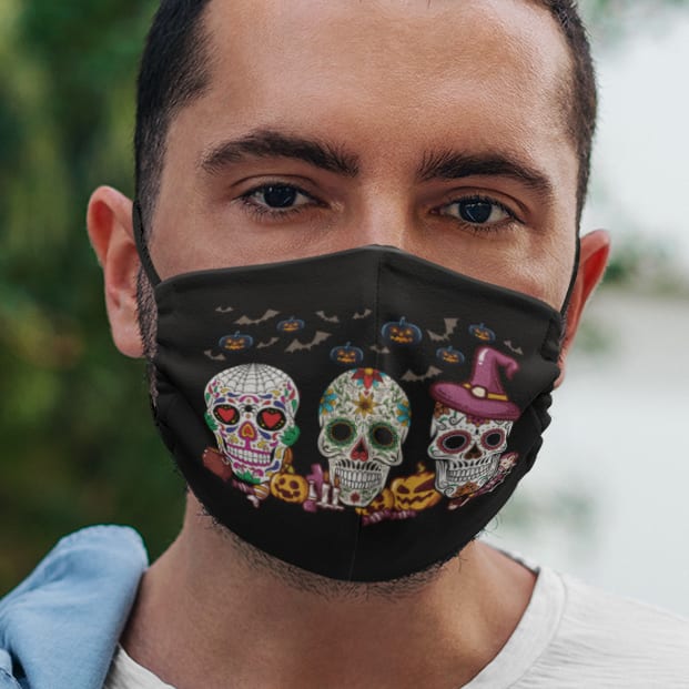 Let’s Shop Halloween Sugar Skulls Washable Reusable Custom Printed Cloth Face Mask Cover!