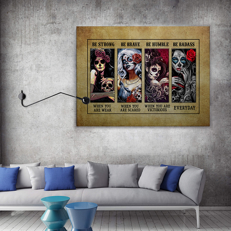 Let’s Shop Sugar Skull Be Strong When You Are Week Gallery Wrapped Framed Canvas Prints – Unframed Poster – Home Decor!