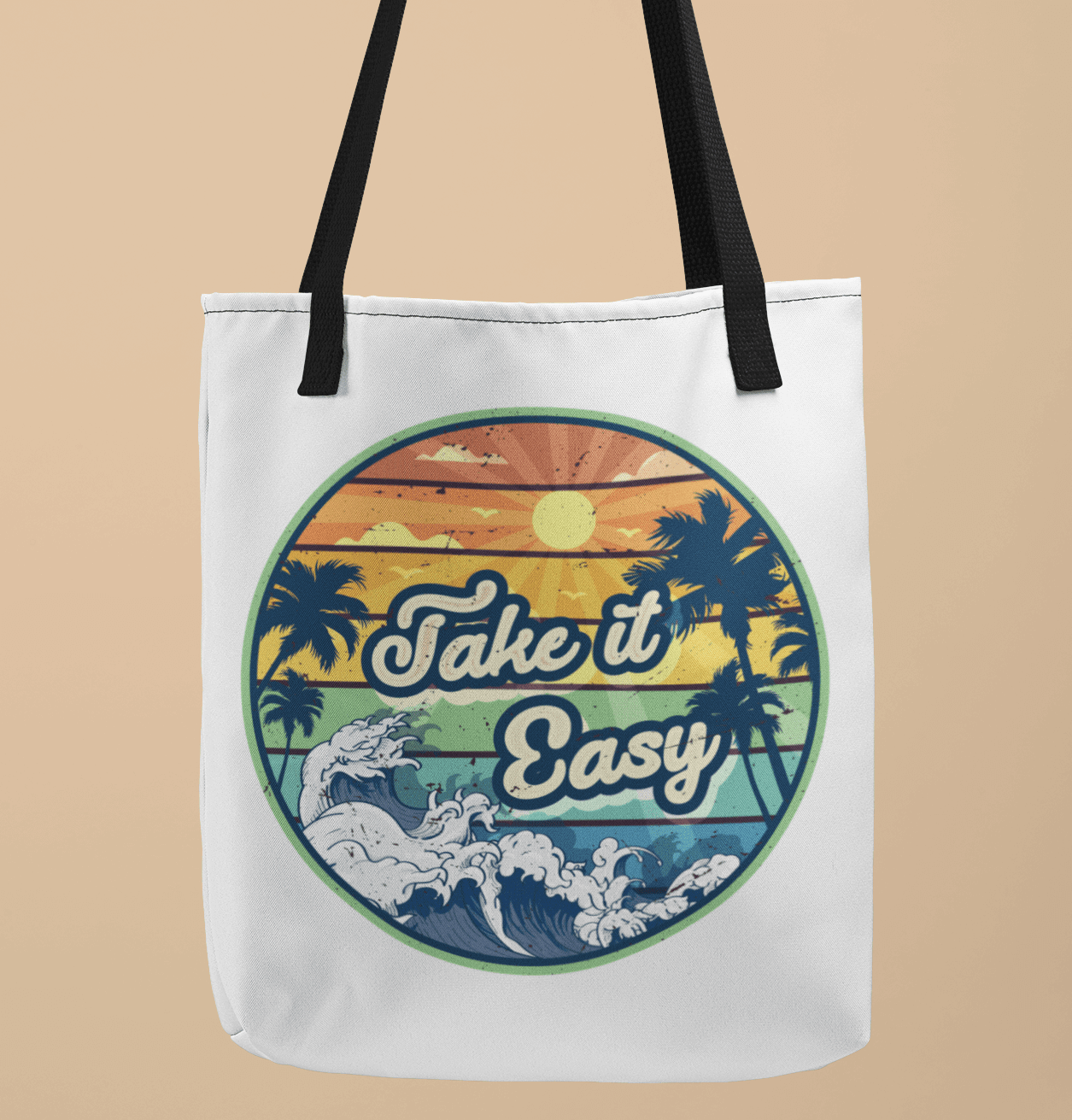 Shop Take Easy Over Print Tote Bag – Shoulder Bag – Reusable Grocery Shopping Bag.