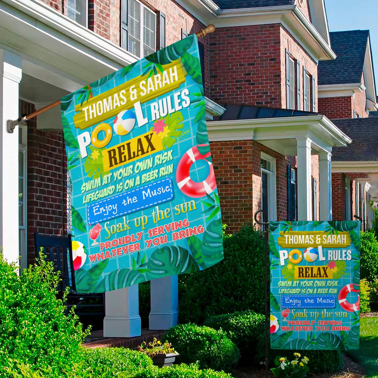 Let’s Shop Personalized Pool Garden Flag – Pool Rules Relax Swim at Your Own Risk Decorative Garden Flag – House Flag!