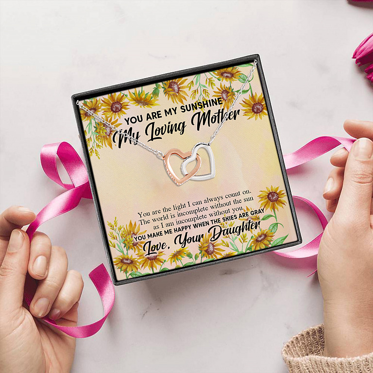 Let’s Shop Sunflower To My Mom You Are The Light I An Always Count On You Make Me Happy Interlocking Hearts Pendant Necklace!